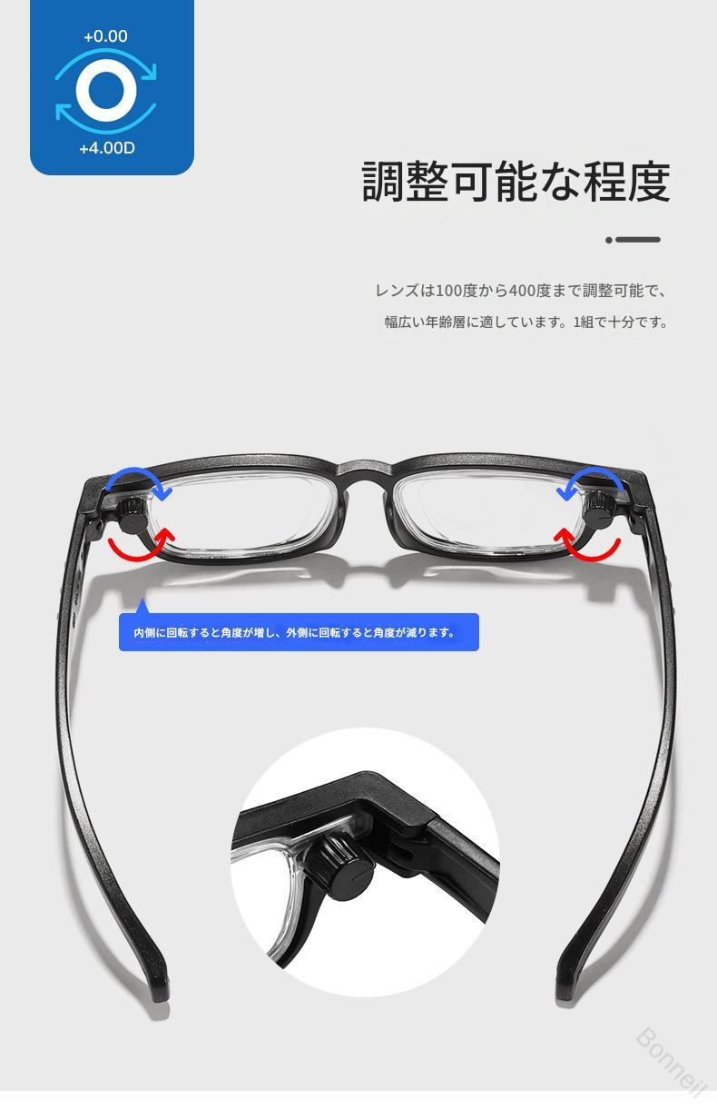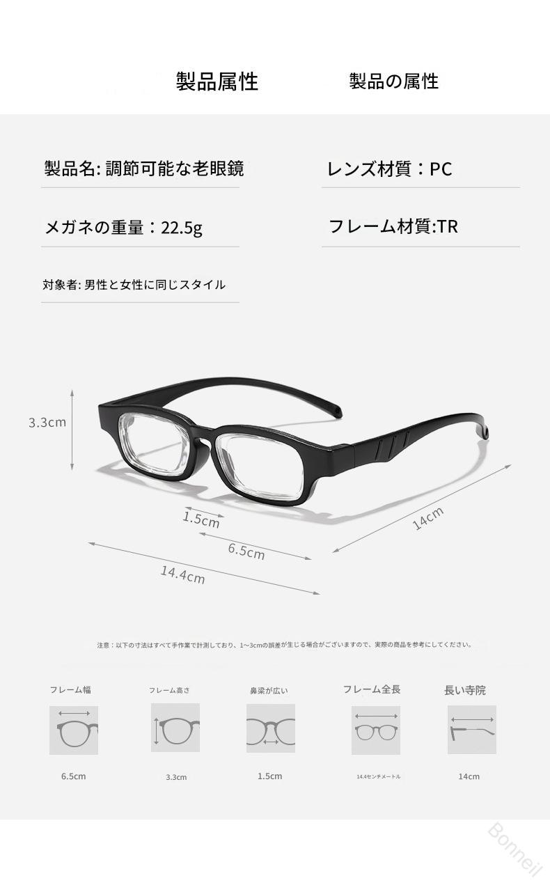 自動調節レンズで目に優しい ブルーライト軽減 オフィスや読書に最適な軽量TR老眼鏡 多段階調整で快適視界 男女兼用デザイン 疲れ知らずのズーム機能