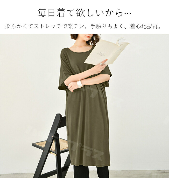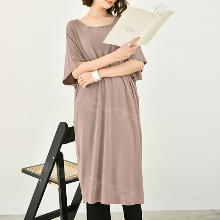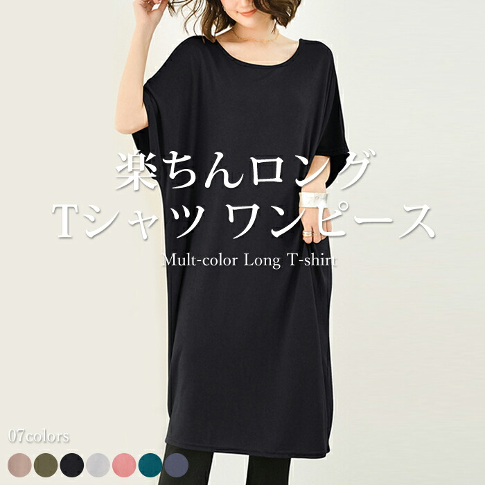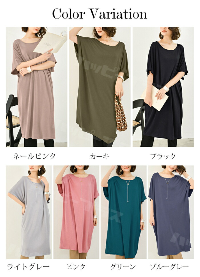 ワンピース Tシャツワンピース レディ ワンピース 新登場! ネールピンク カーキ ブラック ライトグレー ピンク グリーン ブルーグレー