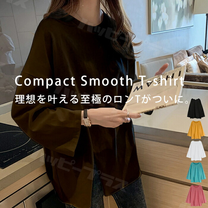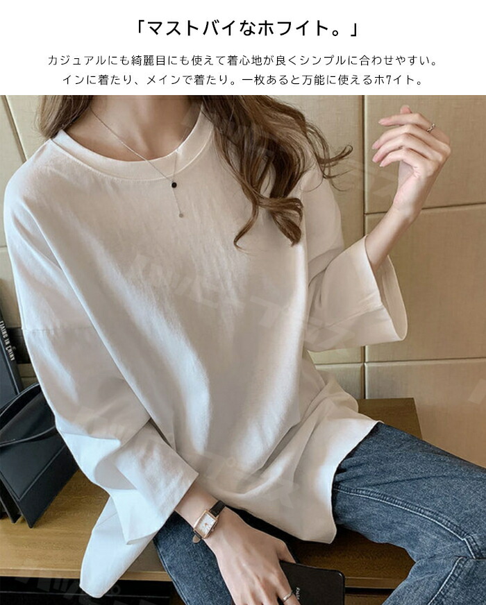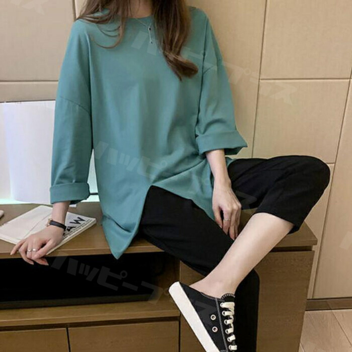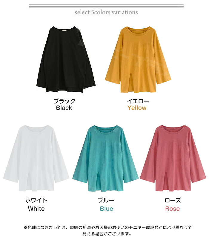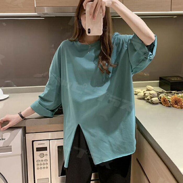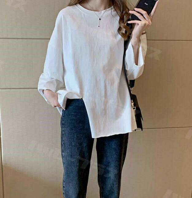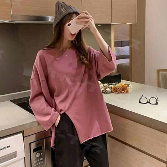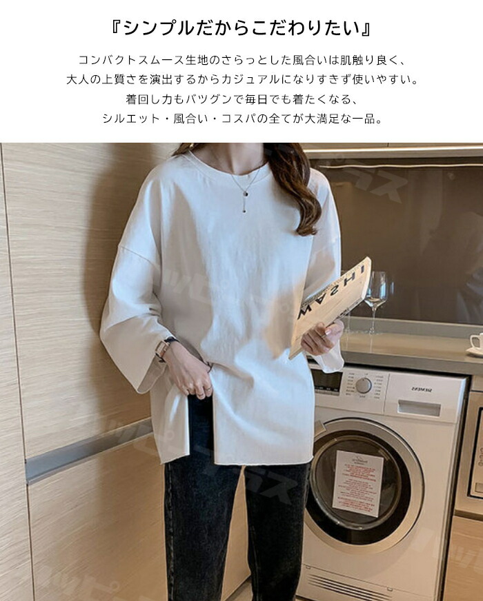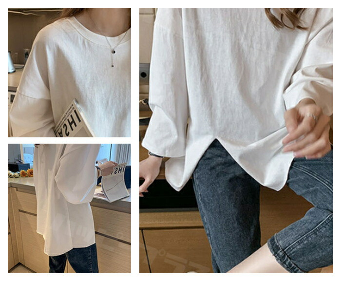 ロンT レディース 重ね着 Tシャツ 無地 長袖 スリット 薄手 大きめ 白 黒 トップス クルーネック 体型カバー カットソー tシャツ スリット入り ロング お尻が隠れる レイ チュニック