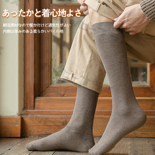 2足組 あったか靴下 ハイソックス メンズ 男 紳士 もこもこ 裏毛 パイル 靴下 ソックス レッグウォーマー ニーハイ丈 ナチュラルカラー ルームソックス 暖か 分厚 発 おしゃれ