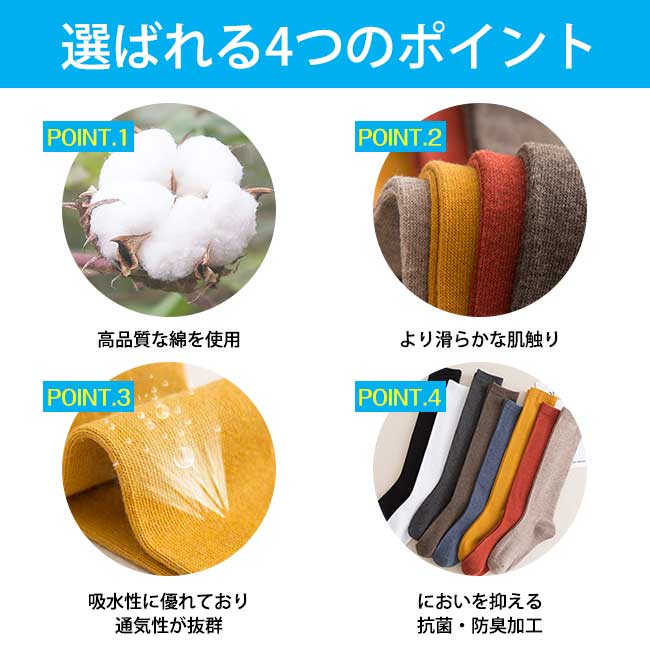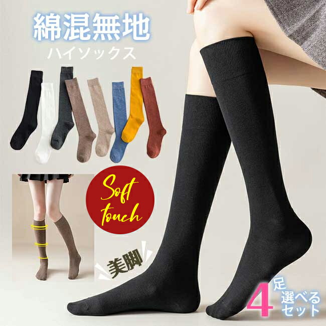 靴下 レディース 4足セット 綿 ハイソックス スクールソックス シンプル くつした 防寒 無地 暖かい 厚手 冷え取り 冷えとり 冬用 冬新作 保暖 秋 冷え対策 スポーツ 運動 冬