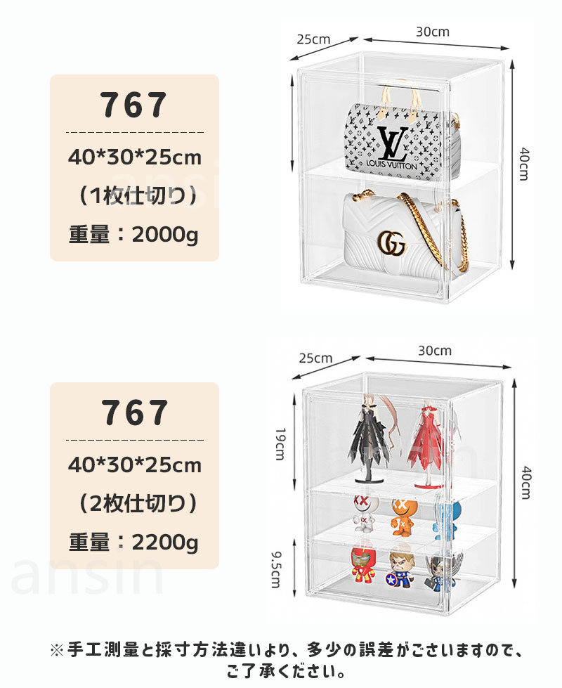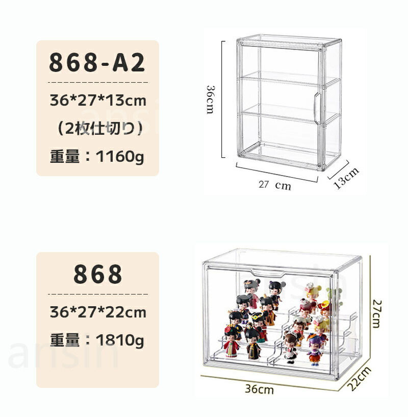 アクリル収納ケース 透明 フィギュアケ 898-A1-27*22*13cm(1枚仕切り) 868-A1-36*27*13cm(1枚仕切り) 868-A2-36*27*13cm(2枚仕切り) 868-36*27*22cm 767-40*30*25cm(1枚仕切り) 767-40*30*25cm(2枚仕切り) 1点セット 2点セット
