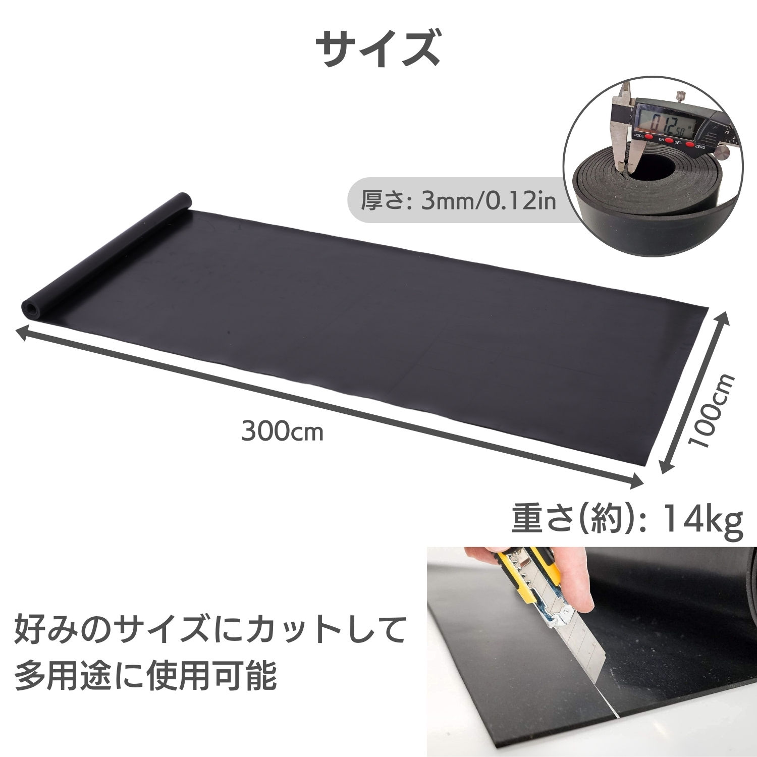 ゴムマット 厚さ3mm 幅100cm× 2メートル 3メートル