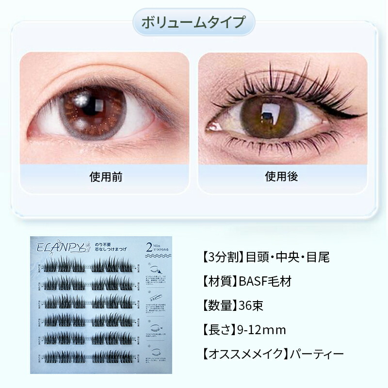 つけまつげ のり不要 束 ナチュラル盛 ナチュラルタイプ ボリュームタイプ ピンセット付きなし ピンセット付き
