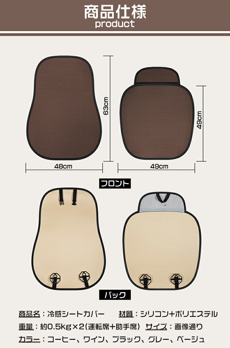 自動車 シートカバー 冷感 2枚セット コーヒー【運転席&助手席】 ワイン【運転席&助手席】 グレー【運転席&助手席】 ベージュ【運転席&助手席】 ブラック【運転席&助手席】