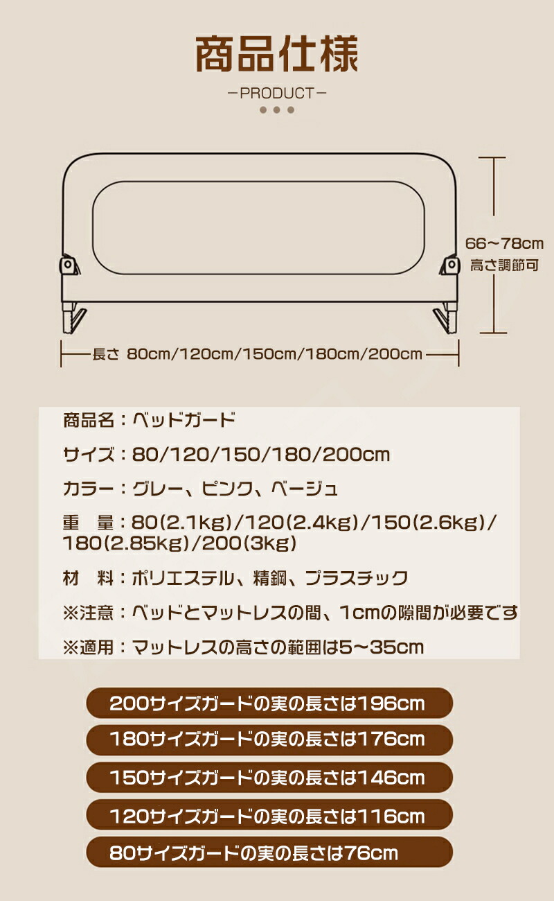 ベッドガード 転落防止 赤ちゃん ベッ ベビー 寝具 ベッド ベッドガード サイドガード 早い者勝ち グレー ベージュ ピンク 80cm 120cm 150cm 180cm 200cm