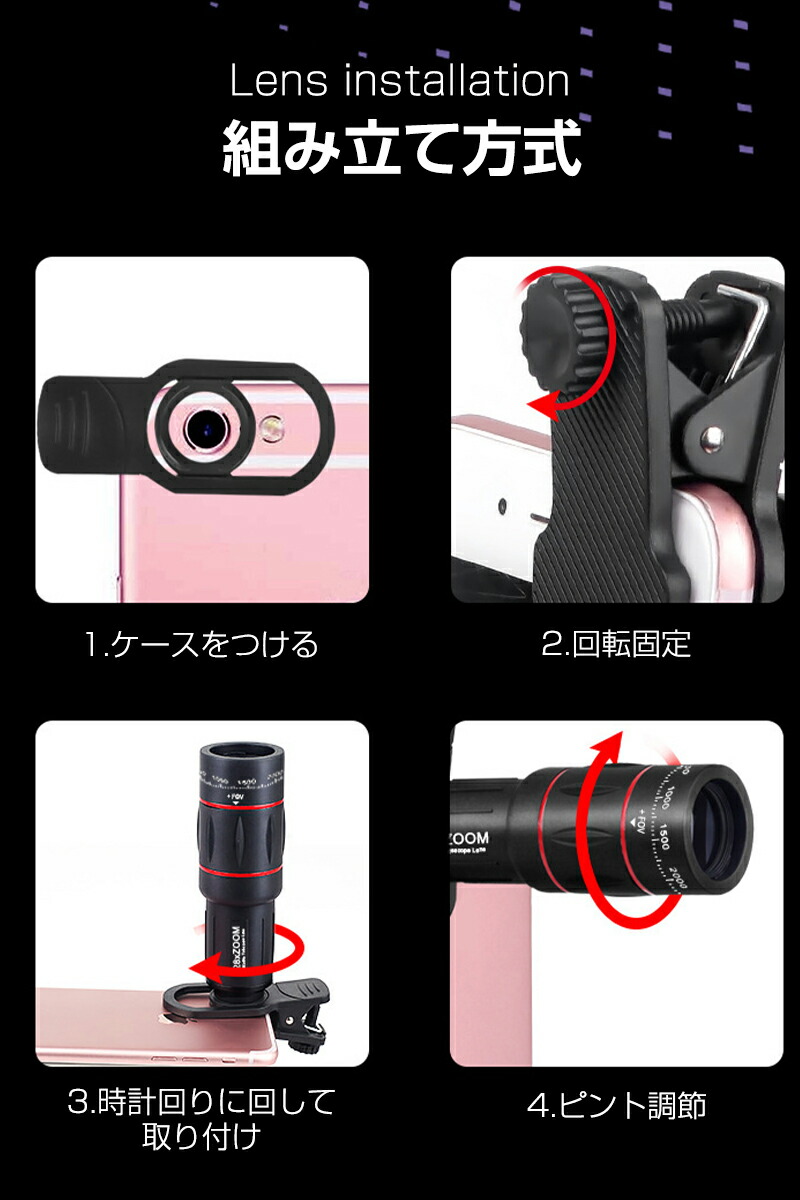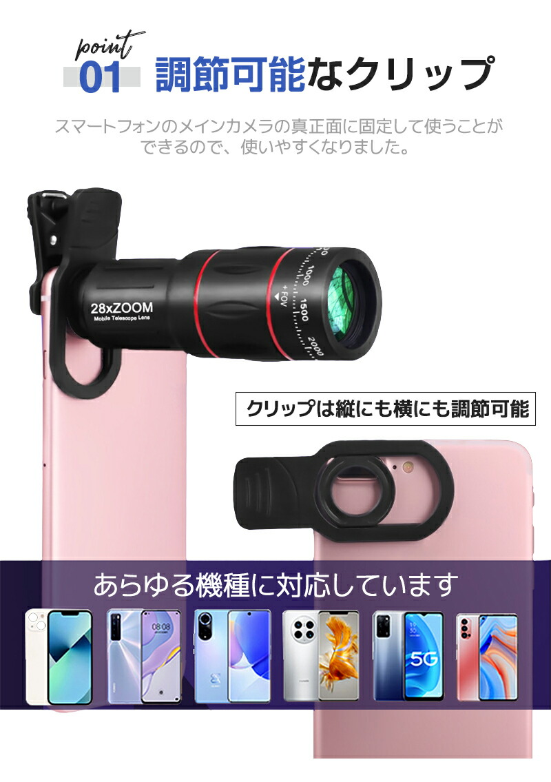 望遠レンズ 単眼鏡 スマホカメラスマホ スマートフォン タブレット 早い者勝ち 18X 28X 36X なし あり