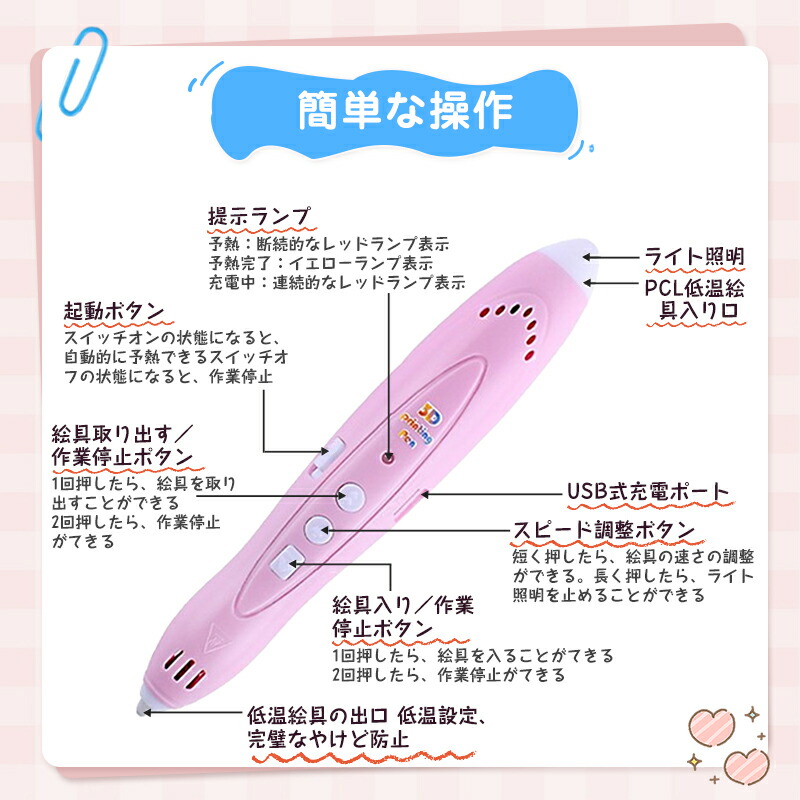 3Dペン 想像力高め子供も大人も 魔法 ピンク ブルー
