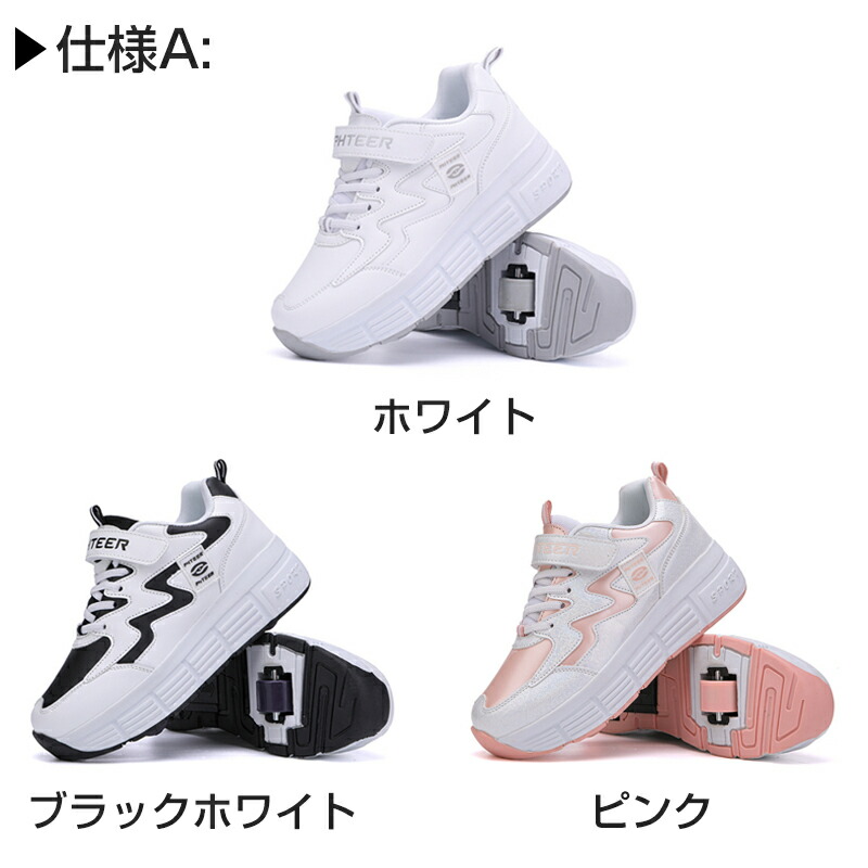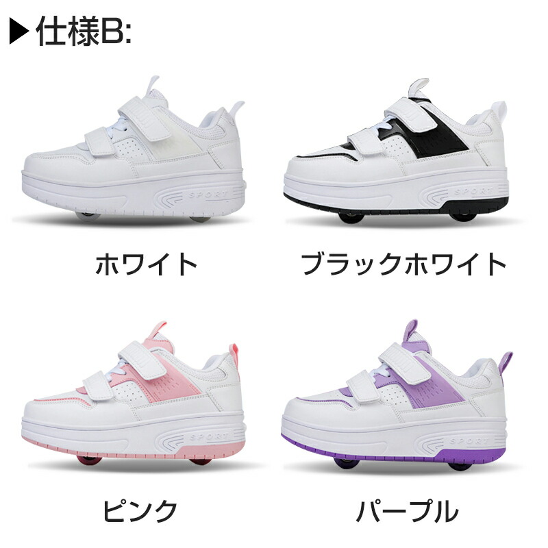 ローラーシューズ 大人 子供 2輪 ロ 靴 通販 仕様A(ホワイト) 仕様A(ブラックホワイト) 仕様A(ピンク) 仕様B(ホワイト) 仕様B(ブラックホワイト) 仕様B(ピンク) 仕様B(パープル) 31(20.5cm) 32(21cm) 33(21.5cm) 34(22cm) 35(22.5cm) 36(23cm) 37(23.5cm) 38(24cm) 39(24.5cm) 40(25cm)