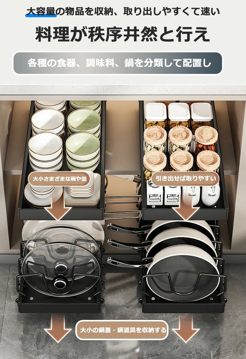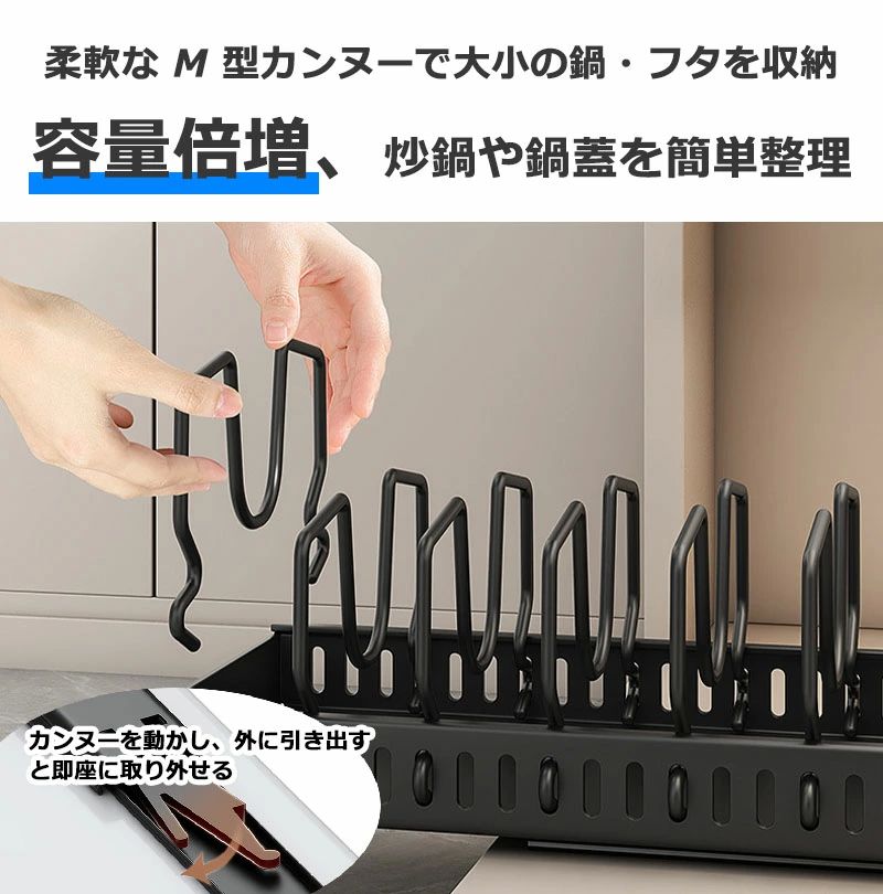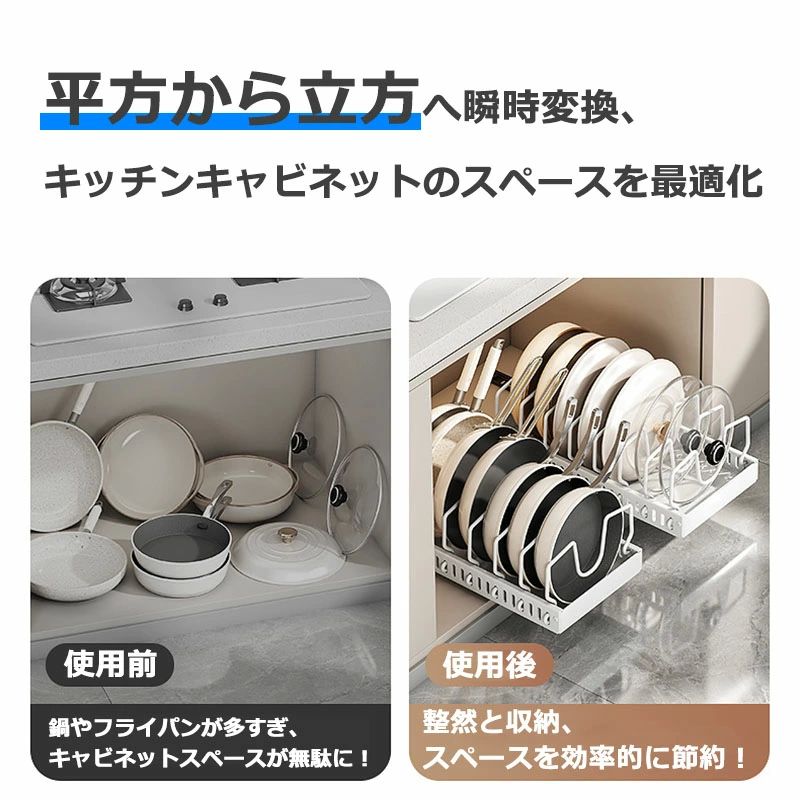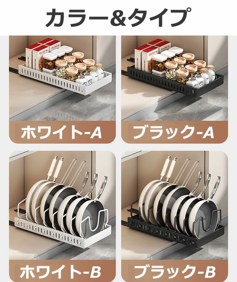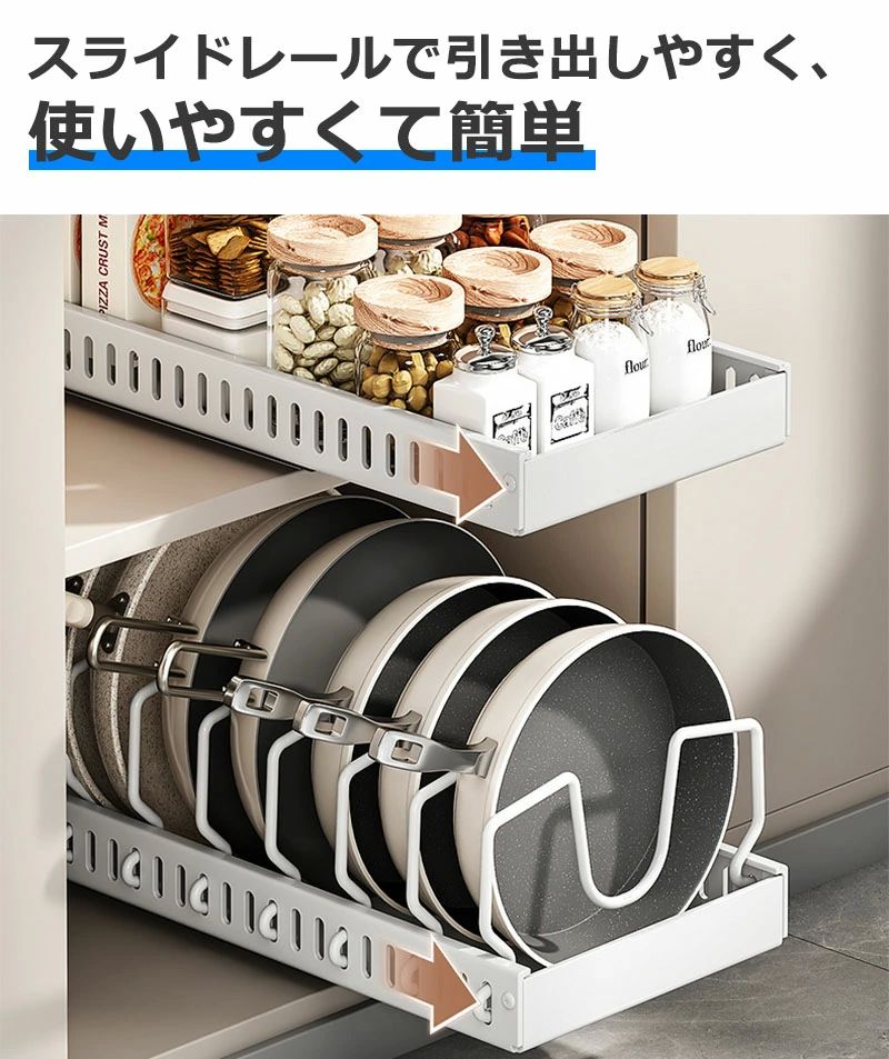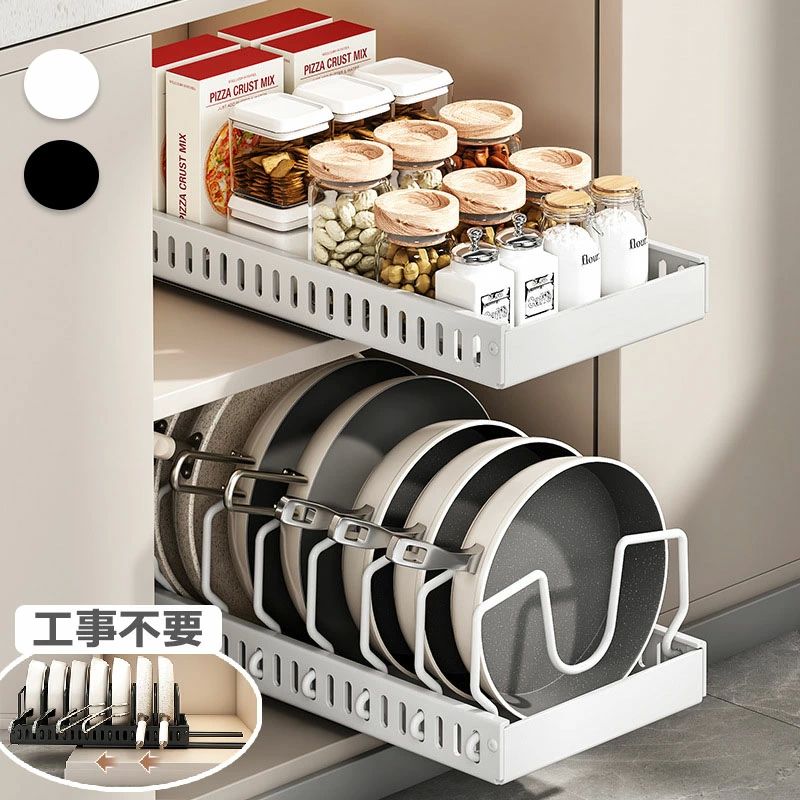 収納ラ フライパン収納 フライパンスタ ブラック ホワイト 3.2*21*42CM 3.2*21*52CM
