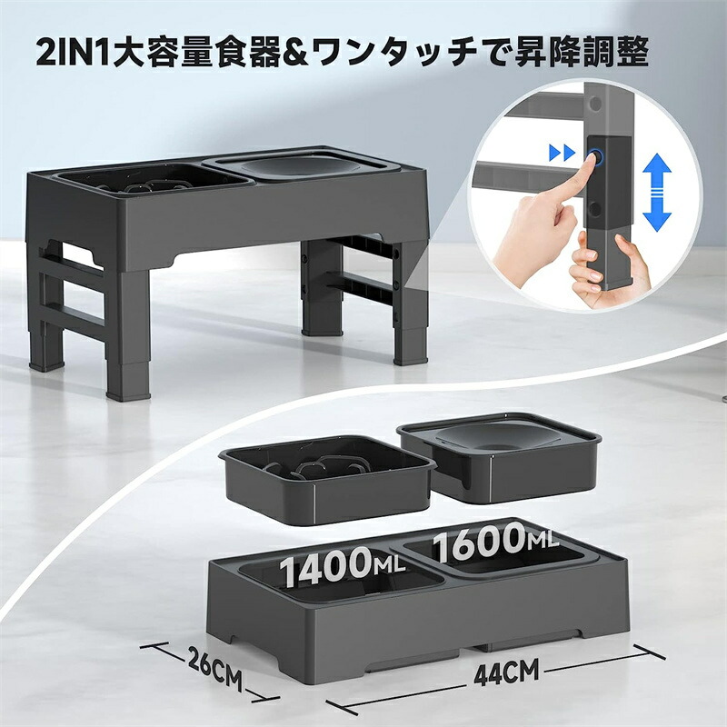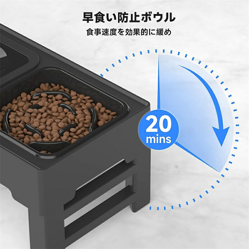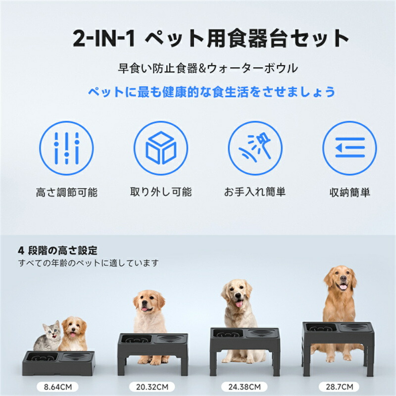 【分解可能&お手入れ簡単】犬餌台は工具を必要とせずほどの組み立てが簡単で、使用しないときは分解して収納でき、ご自宅にすっきりとしたスペースを確保できます。餌台に平滑表面処理しておりますので、日常手入れも驚くほどやすいです。折りたたみ式の食器スタンドで、外出の持ち運びは意外の簡単便利!さらに、ウォーターボウルと早食い防止ボウルが取り外し可能で、手洗いまたは食器洗い機で簡単にきれいになれます。