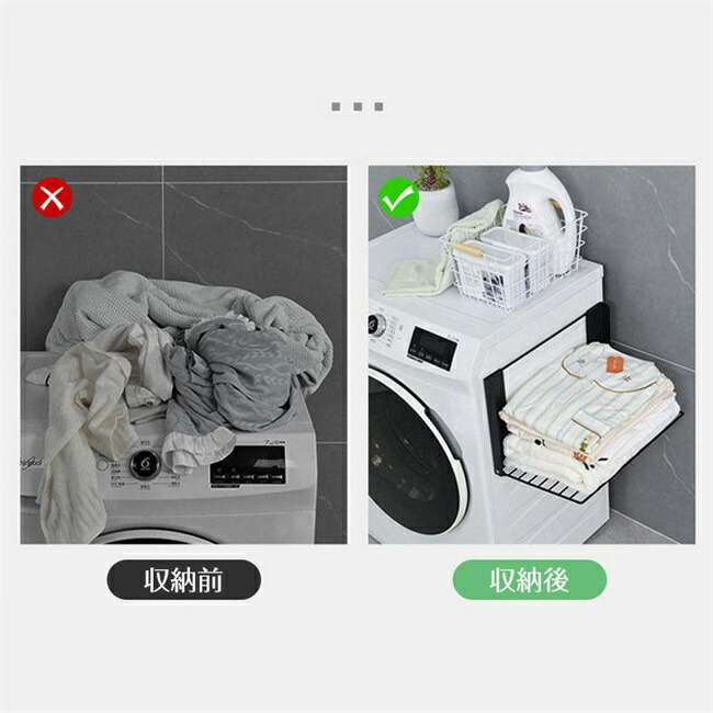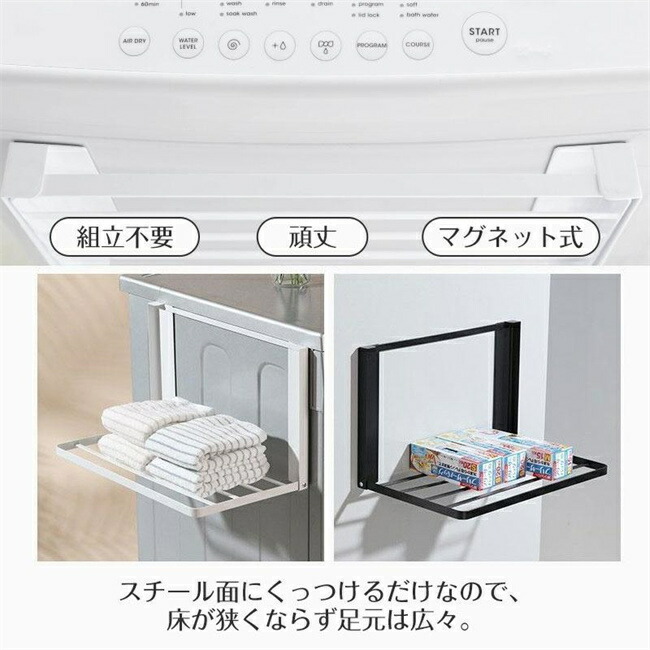 洗濯機ラック 洗濯機横マグネット折り畳 ホワイト ブラック