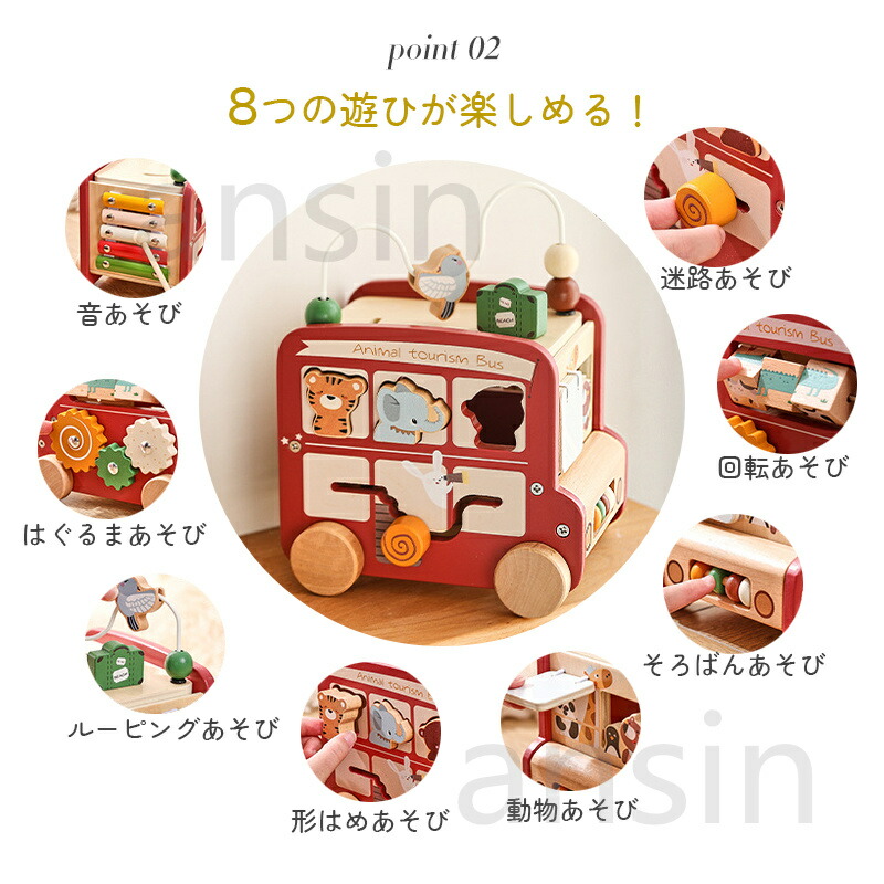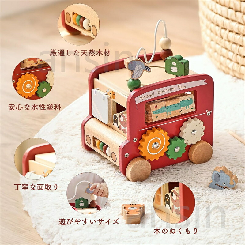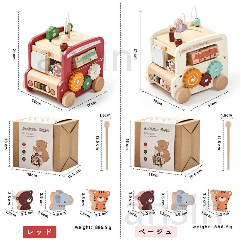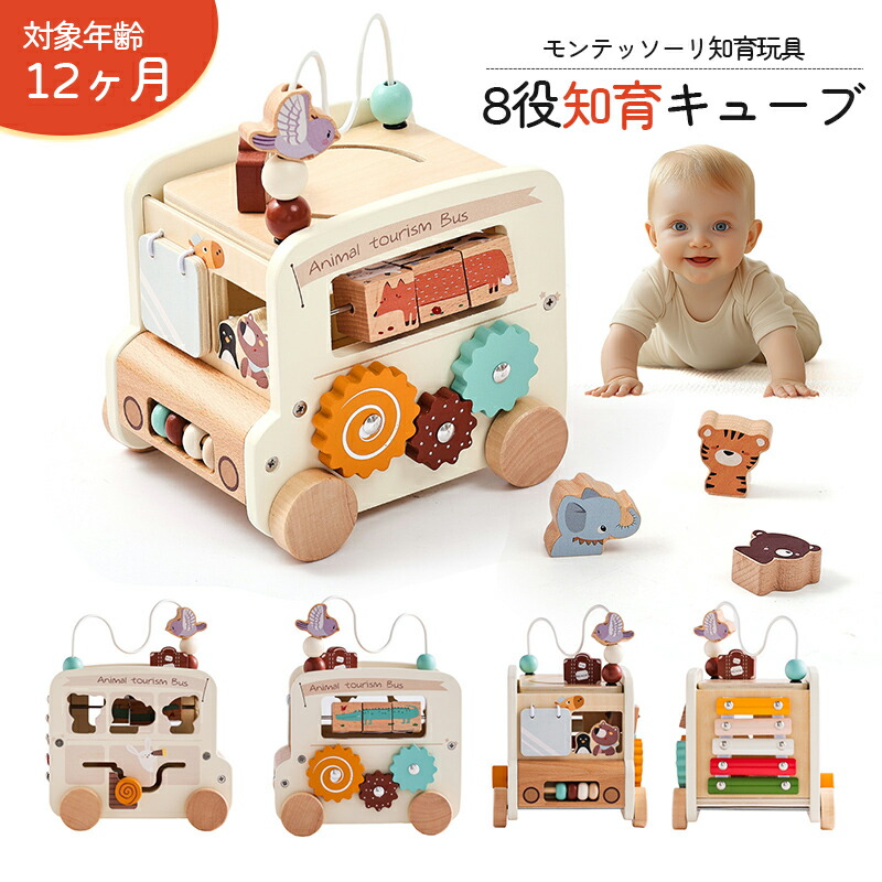 モンテッソーリ 知育玩具 8役知育キュ レッド ベージュ