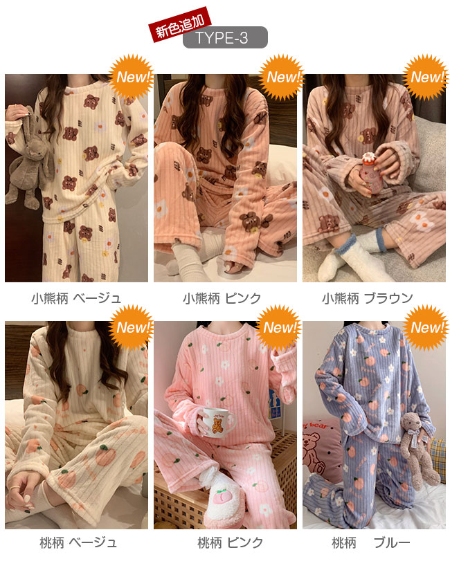 モコモコ パジャマ レディース ルーム レディース ナイトウェア ルームウェア ルームウェア 上下セット 特集 TYPE1-キャメル TYPE1-グレー TYPE1-ピンク TYPE1-ブラウン TYPE1-ブルー TYPE2-ホワイト TYPE2-ブラック TYPE2-ブルー TYPE2-ブラウン TYPE2-ピンク TYPE2-パープル 小熊柄ベージュ 小熊柄ピンク 小熊柄ブラウン 桃柄ベージュ 桃柄ピンク 桃柄ブルー