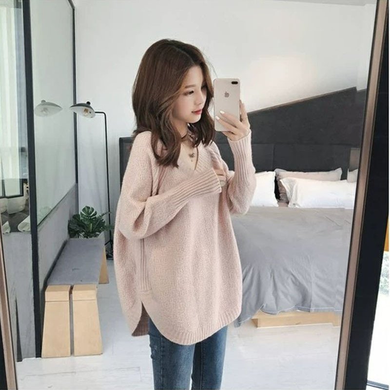 ニットセーター レディース ロング丈 トップス ニット セーター セーター 豊富 カーキ ホワイト ブラック グレー ピンク