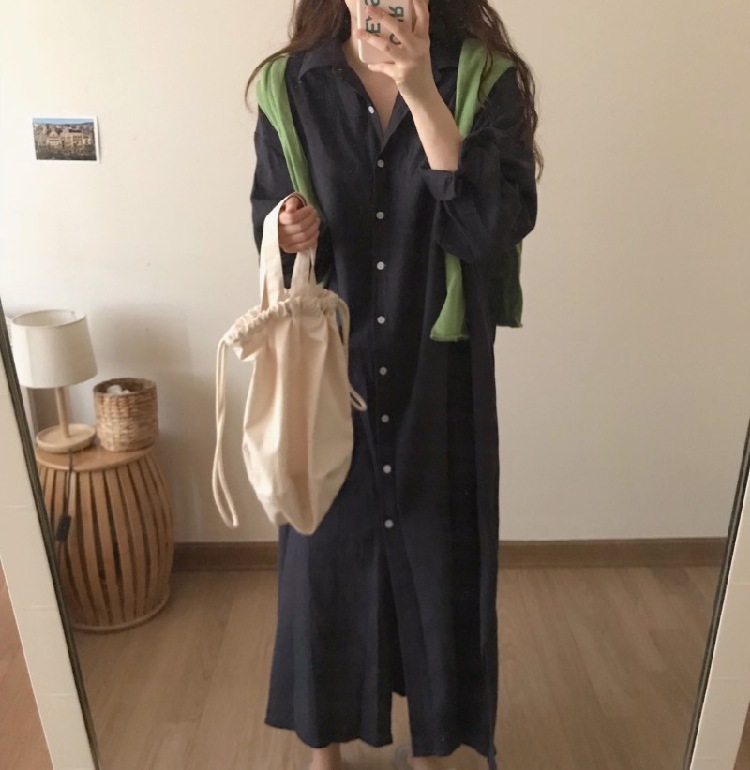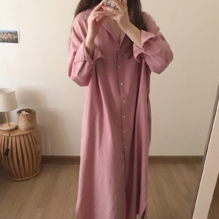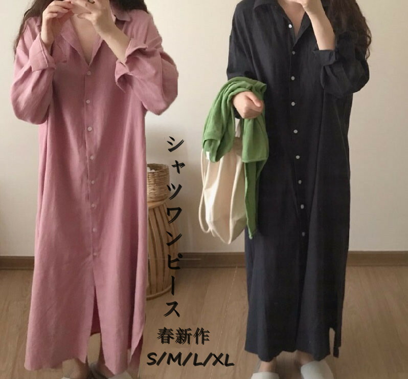 シャツワンピース ロング 春新作 OL レディースファッション 続々登場 ピンク 紺色 S M L XL