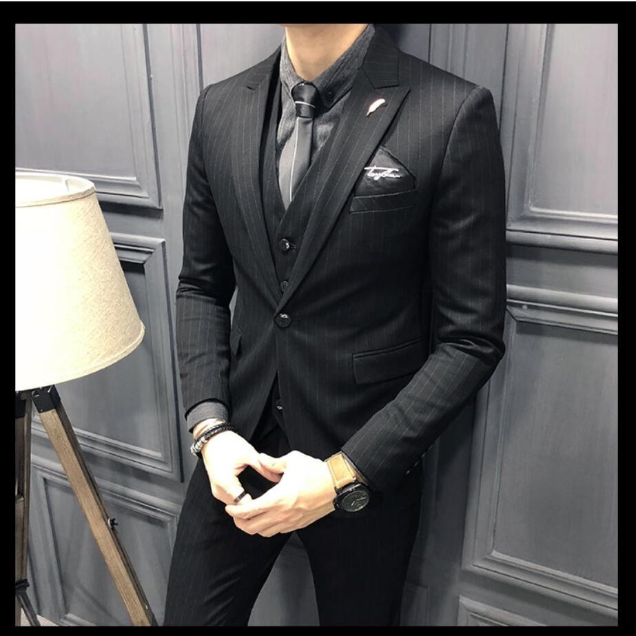 ストライプ 新作 メンズスーツ 3点セ スーツ セットアップ スーツ 人気 コーヒー ブラック グレー M L XL 2XL 3XL