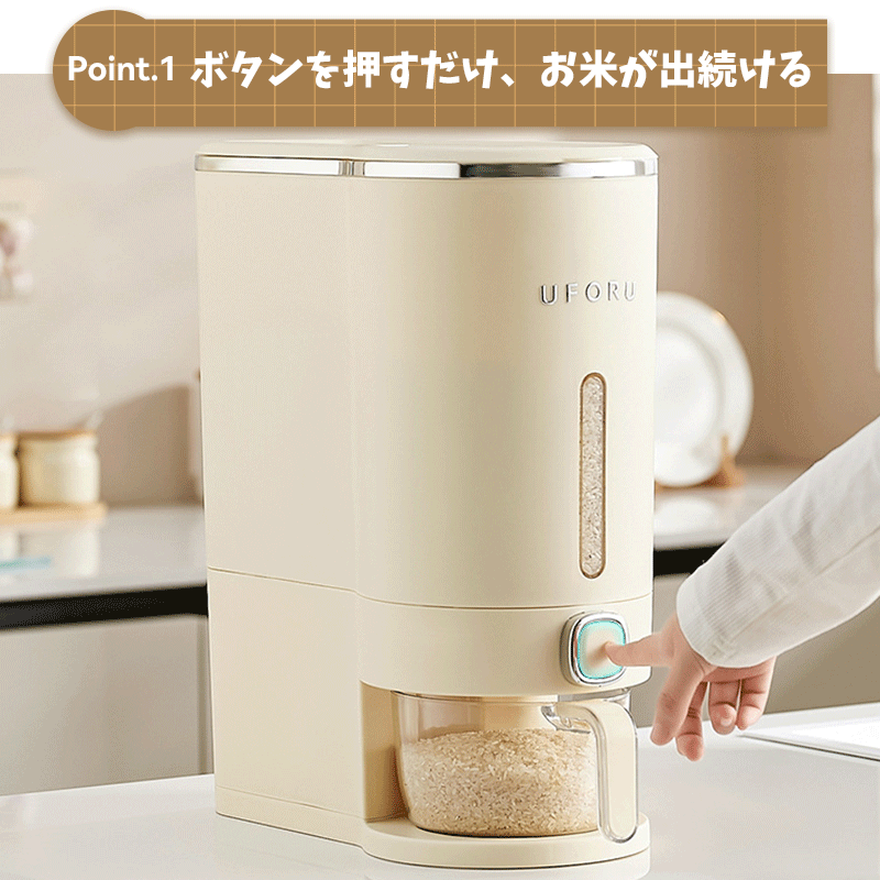 「プッシュボタン式」ワンタッチ自動お米取り可能です。