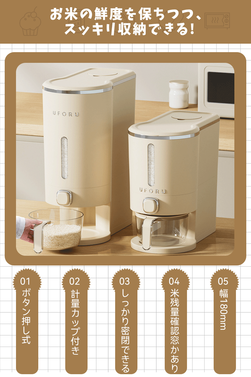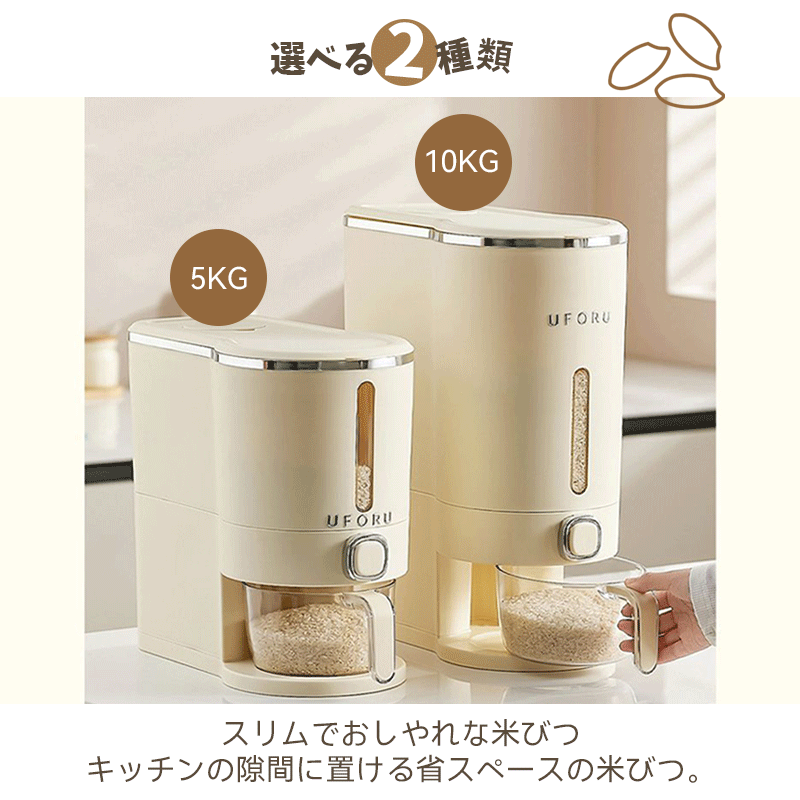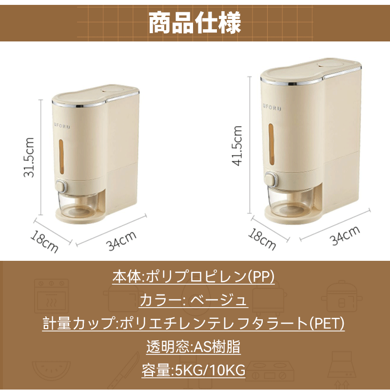 米びつ ライスストッカー 米櫃 こめび 保存容器 調味料入れ 米びつ 通販 ベージュ ブラウン 5kg 10kg
