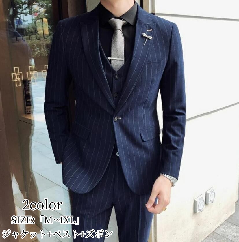 メンズスーツ タキシード ストライプ メンズファッション 豊富 ブラック ネイビー M L XL 2XL 3XL 4XL