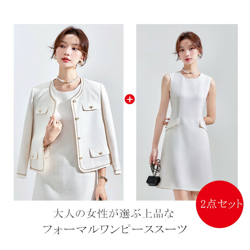 ツイードジャケットノースリーブワンピー レディースファッション 早い者勝ち S M L XL 2XL 3XL 4XL アイボリー ブルー