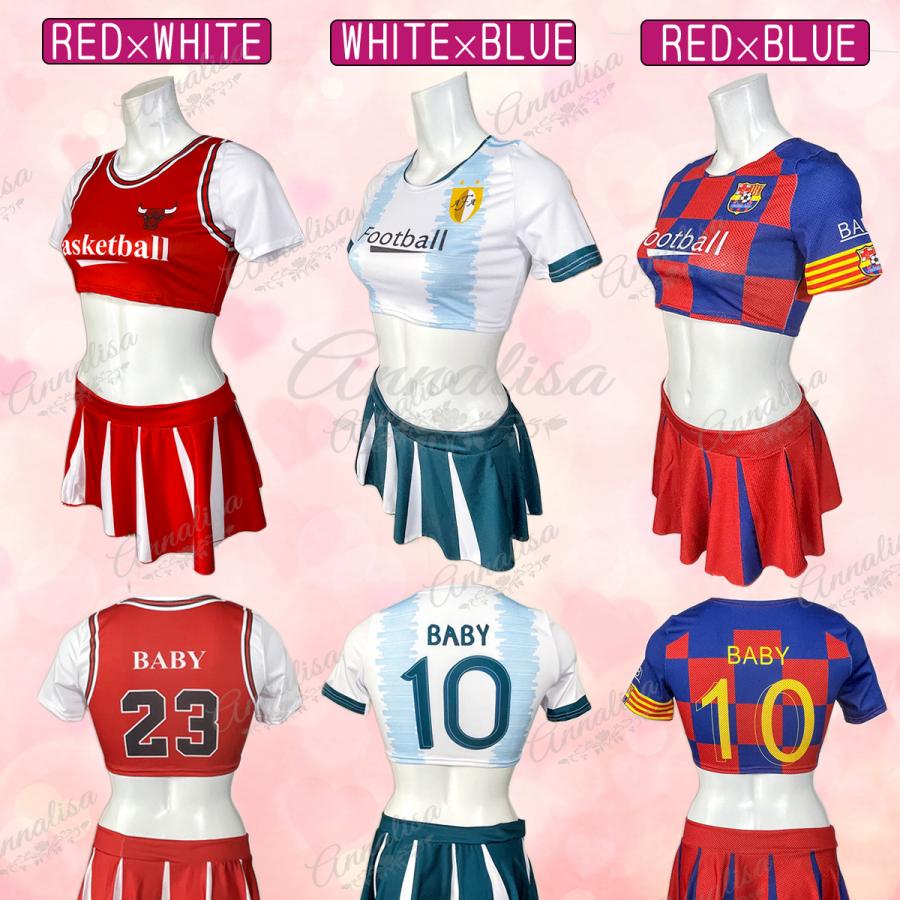 チアガール コスプレ サッカー バスケ ホビー 続々登場 レッド×ホワイト ホワイト×ブルー レッド×ブルー