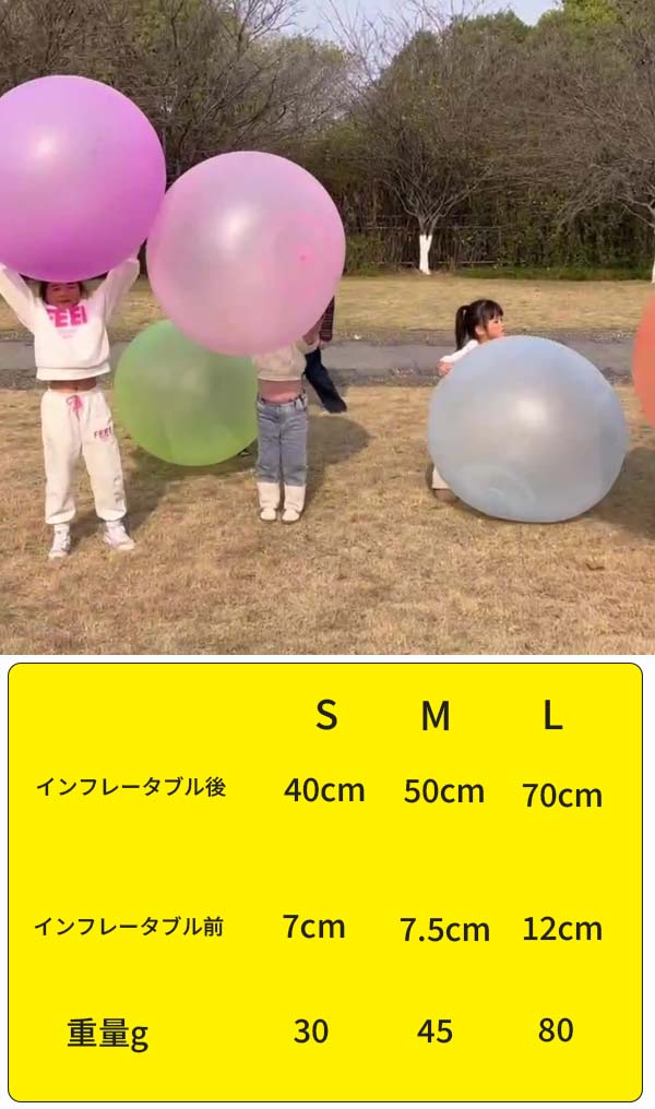 バブルボール 水風船 SML3点set おもちゃ プール 水遊び ビーチボール 超目玉商品 SML三点入セット 特大(1枚入)膨らませた後120cm A-GREEN B-ORANGE C-YELLOW D-BLUE E-PINK F-PURPLE