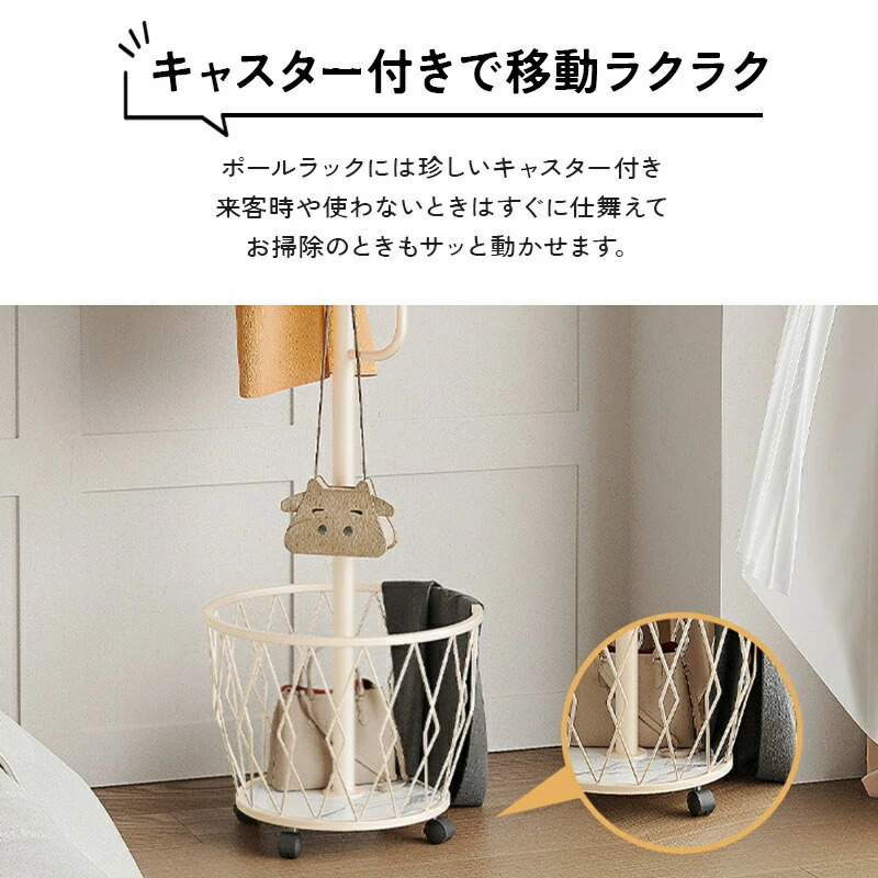 ポールラック ポールハンガー 洋服掛け ブラック クリームホワイト