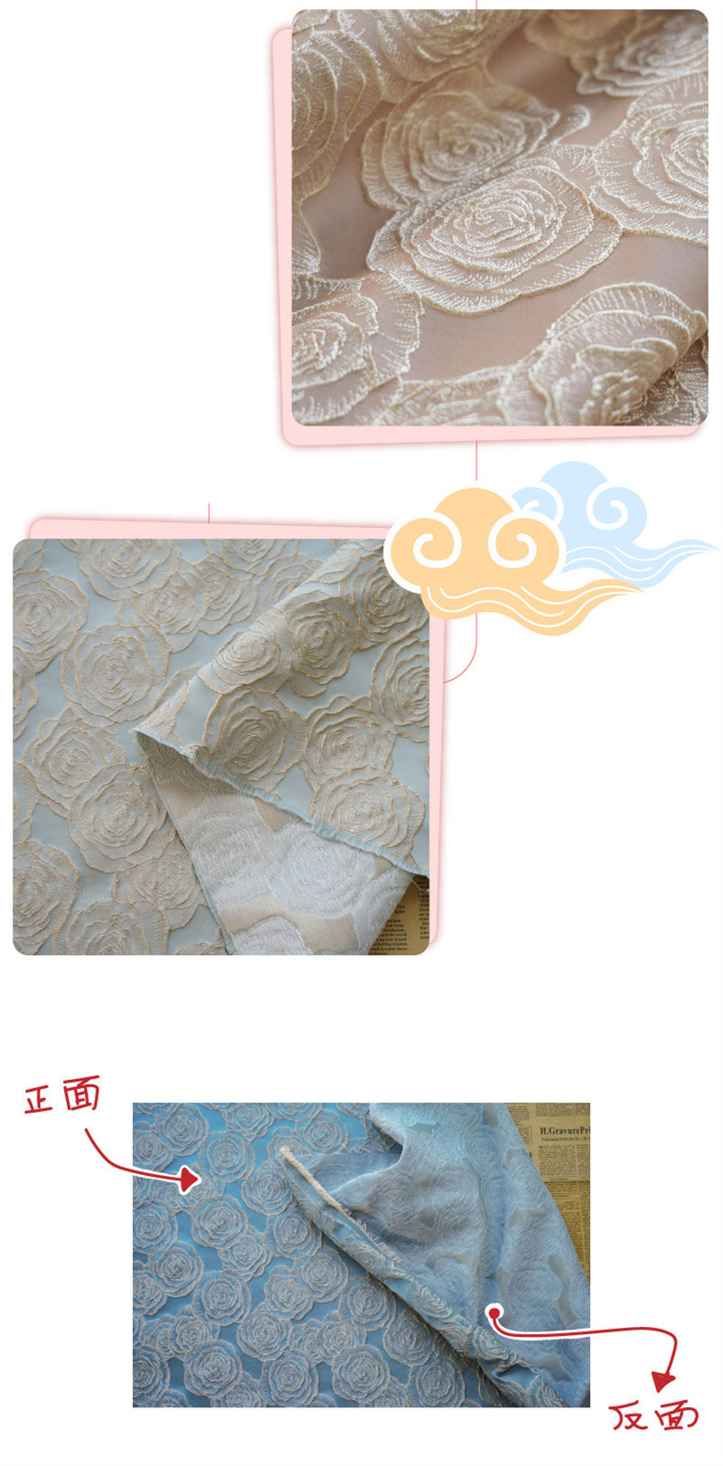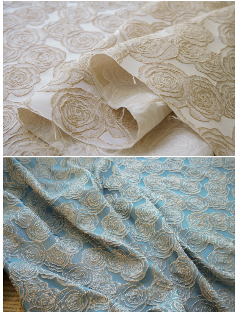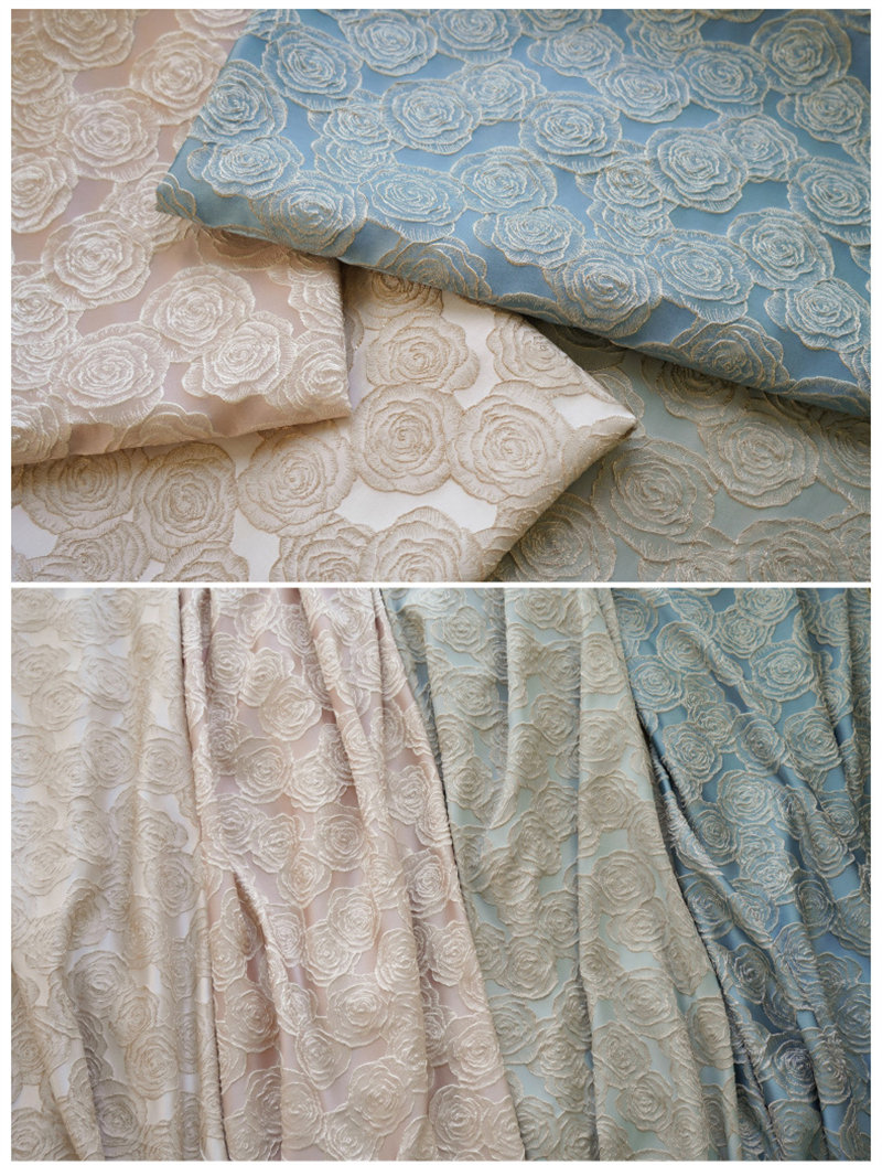 135cm幅 90cm単位 生地 布 布地 きじ ジャカード生地 エンボス生地 色織り 花柄 バラ 灰緑 ピンク ブルー シャンパン