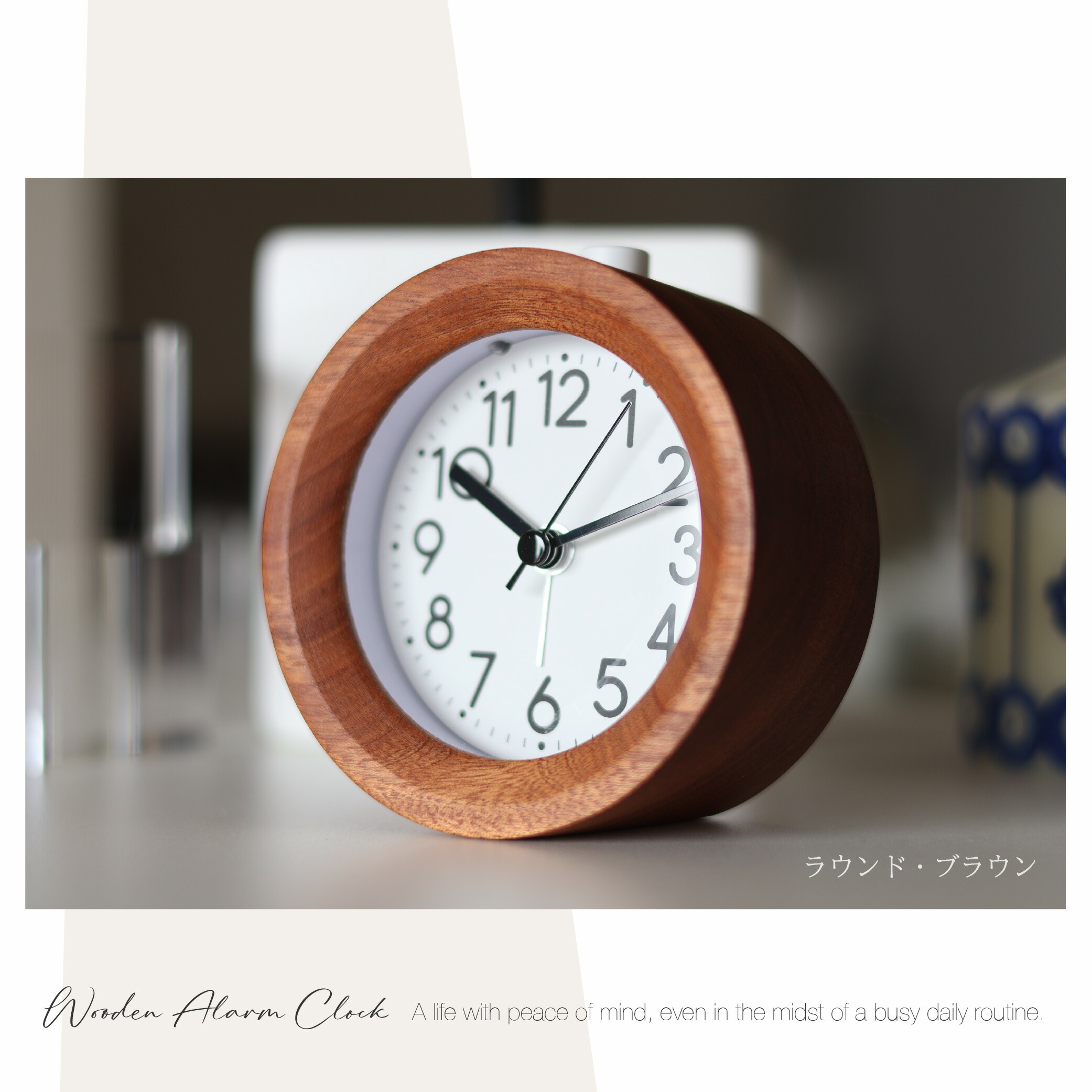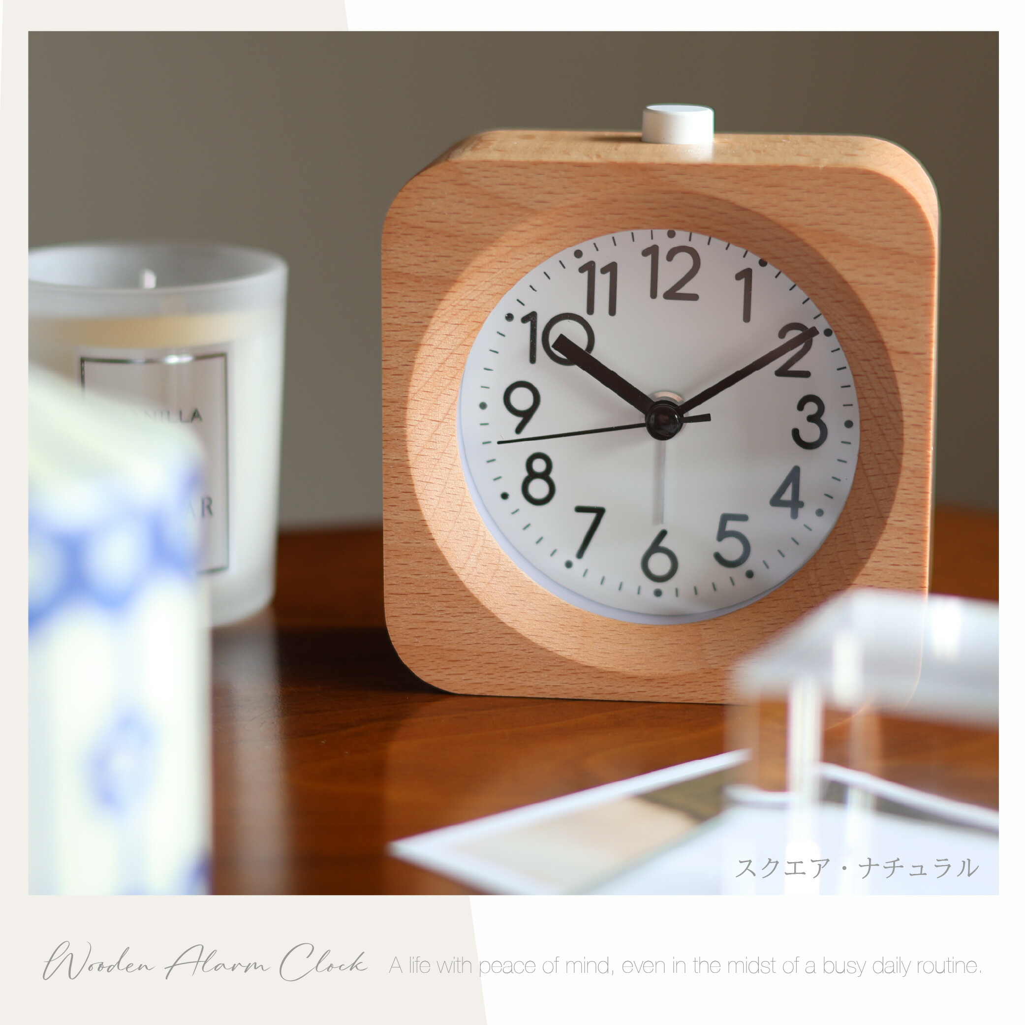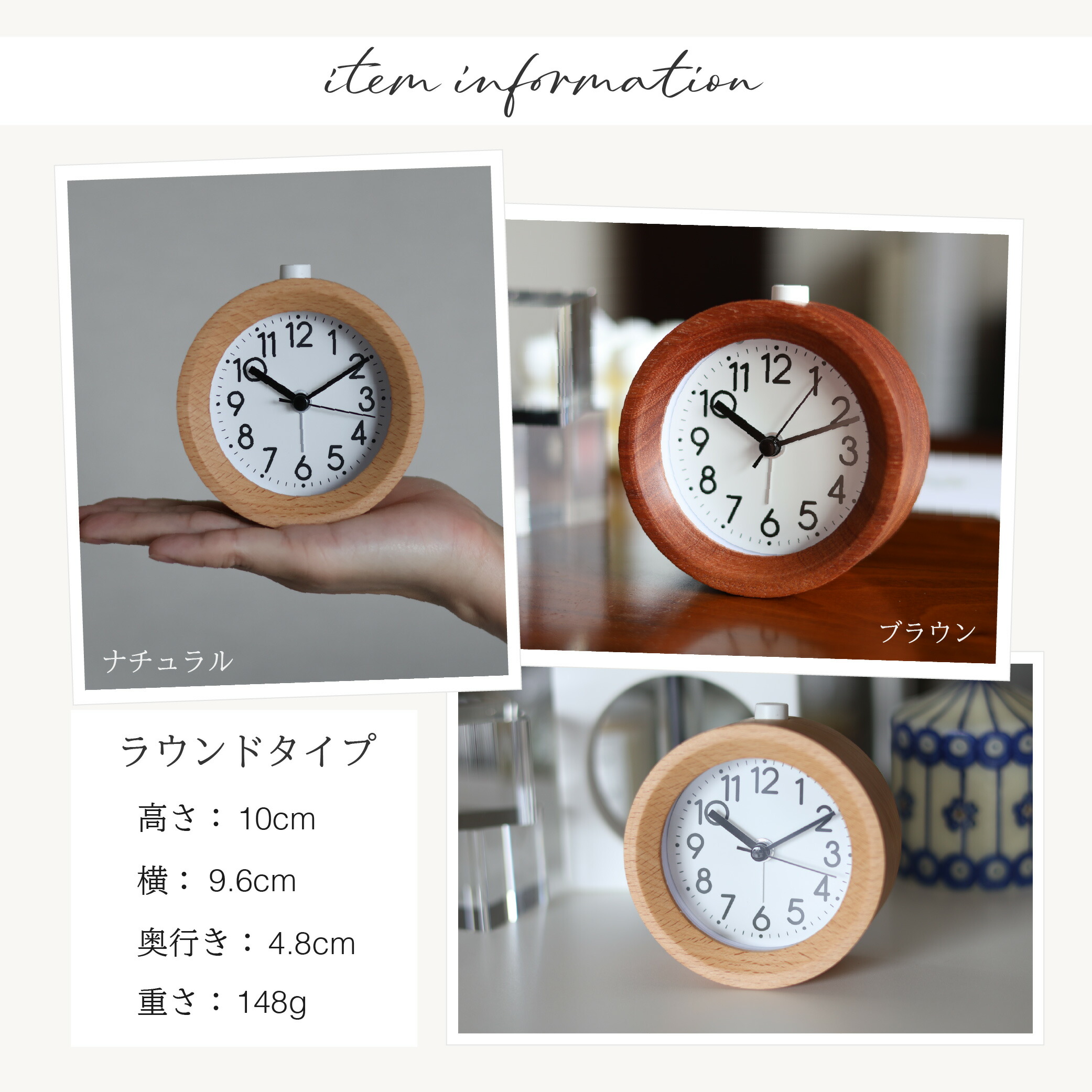 置き時計 おしゃれ アナログ 北欧 ア ナチュラル ブラウン ラウンド スクェア