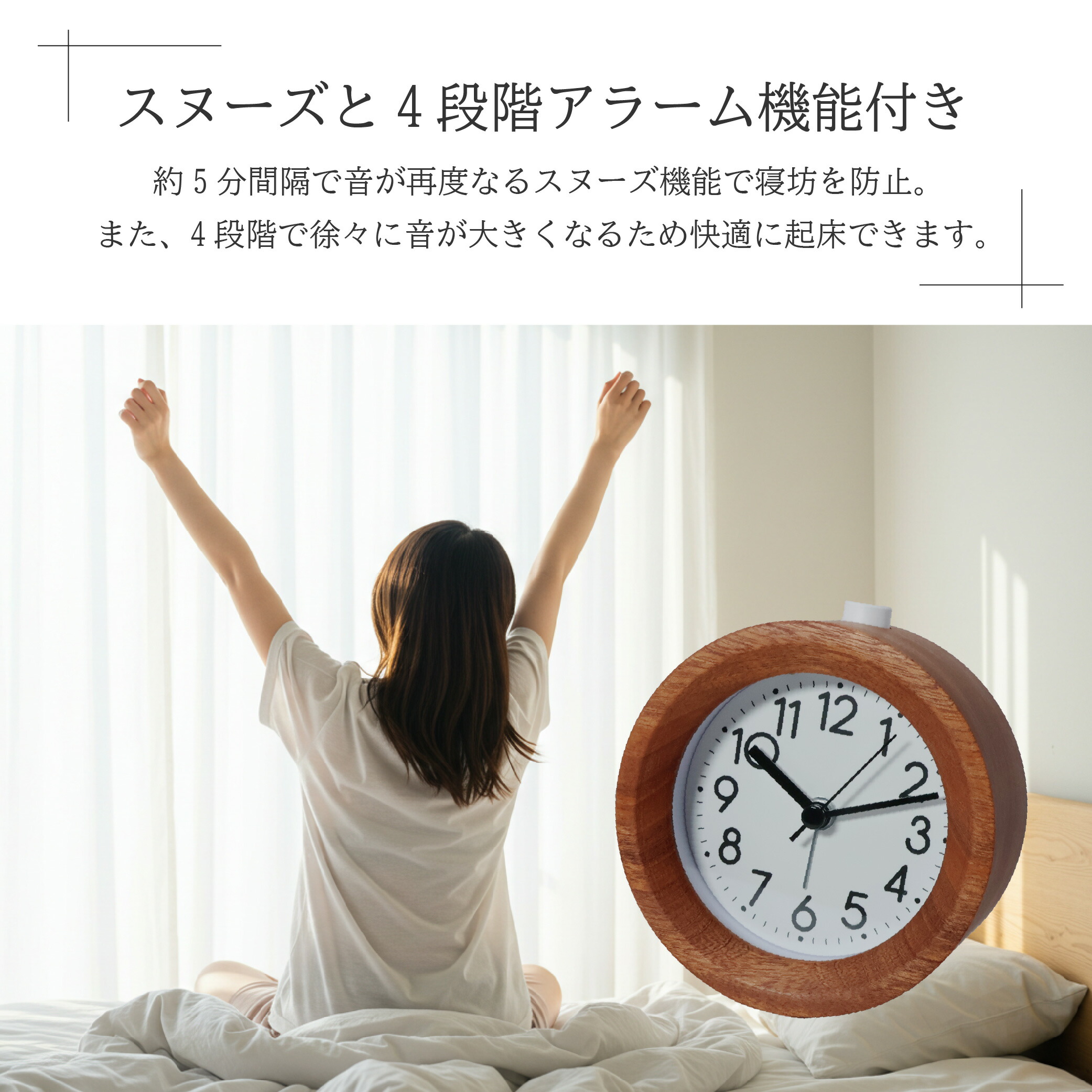 置き時計 おしゃれ アナログ 北欧 アナログ時計 目覚まし時計 かわいい 子供 小型 スヌーズ 静音 大音量 めざまし時計 アラーム 静か ナチュラル インテリア 祝い 木製