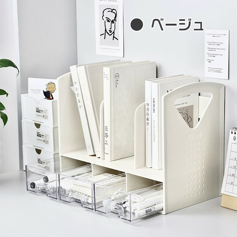 卓上収納ボックス 机上ラック 本立て 文房具 事務用品 机上収納 整理用品 ブックスタンド 新登場! ブラック ベージュ