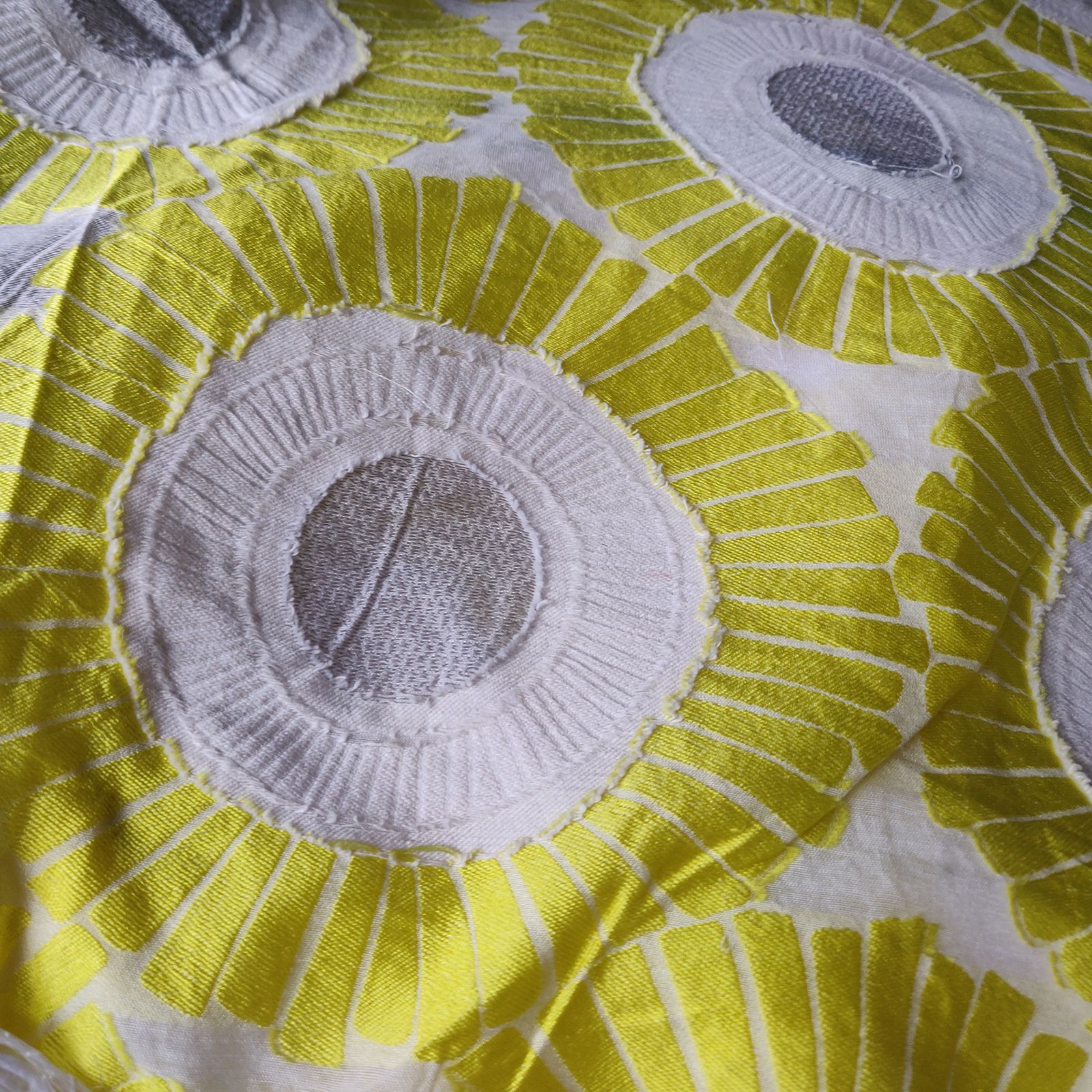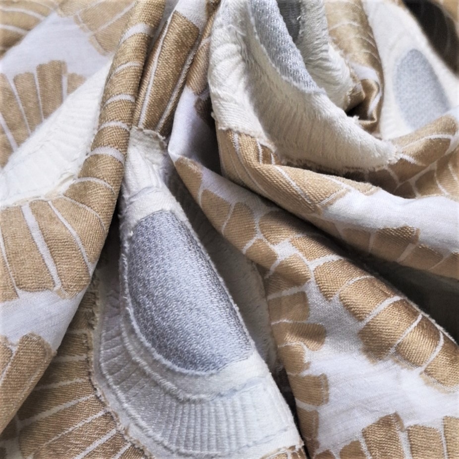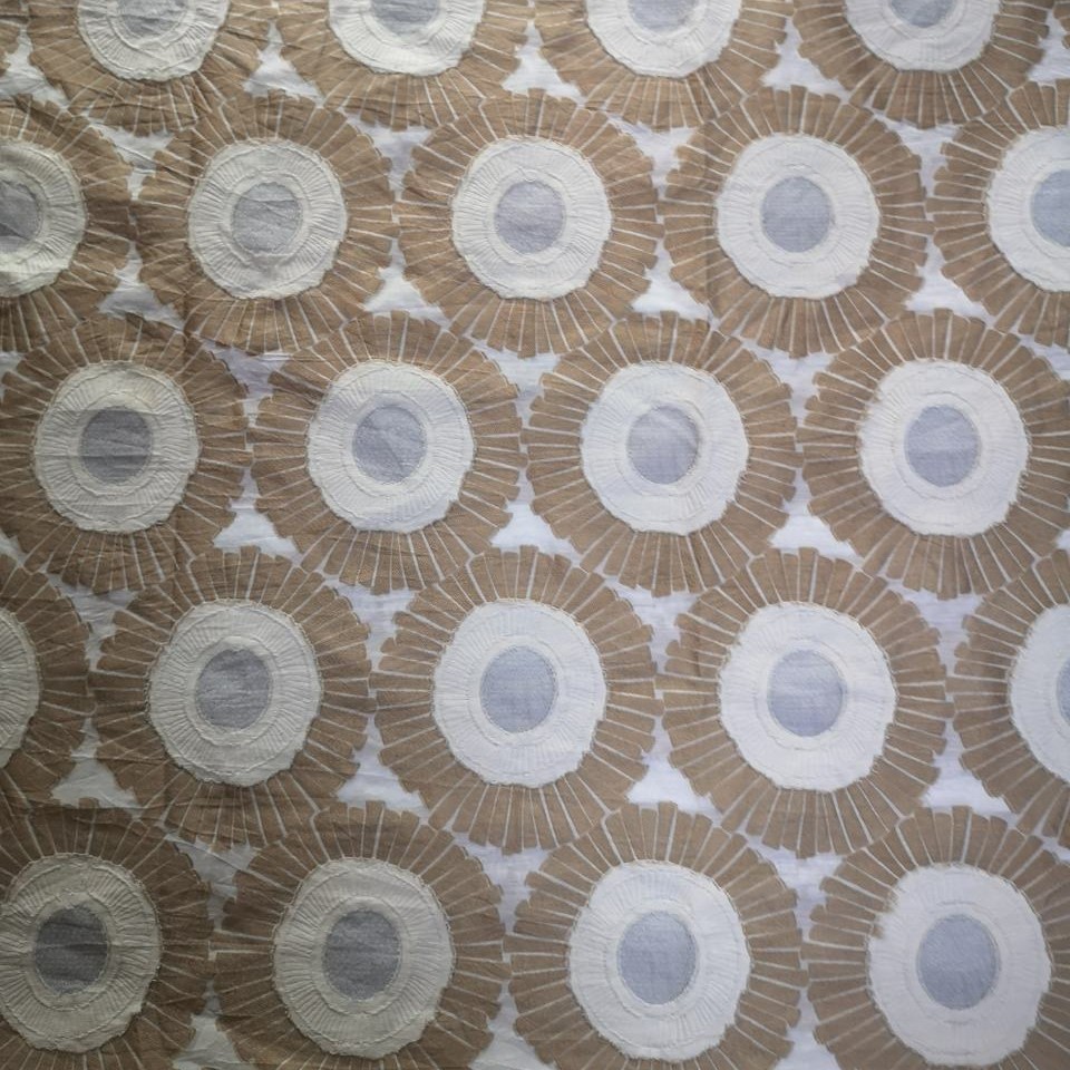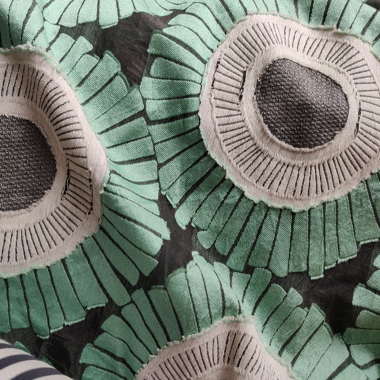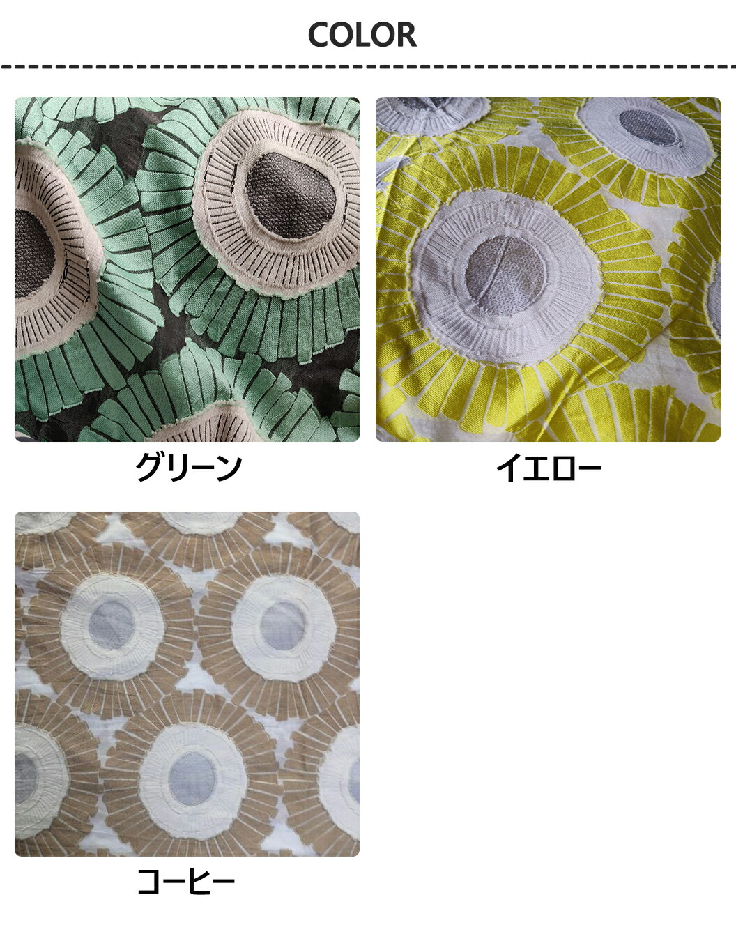 135cm幅 長さ190cmジャカード生地 生地 布 布地 ぬの きじ 色織り 綿麻感 幾何柄 車輪柄 サークル 円形 グリーン イエロー コーヒー 丸い輪
