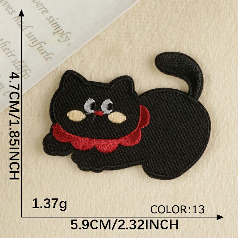 13枚組 黒猫柄 犬柄 ワッペン アッ 日用品雑貨 文房具 手芸 豊富な品揃え 色ごとに1つずつ 色自由選択(要望に記入)
