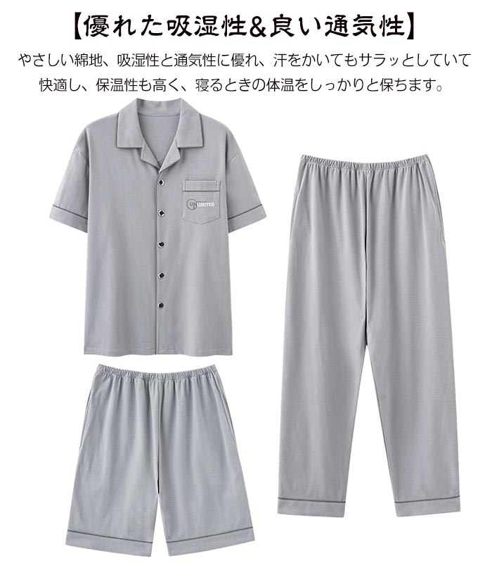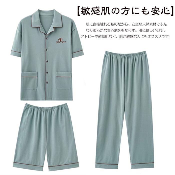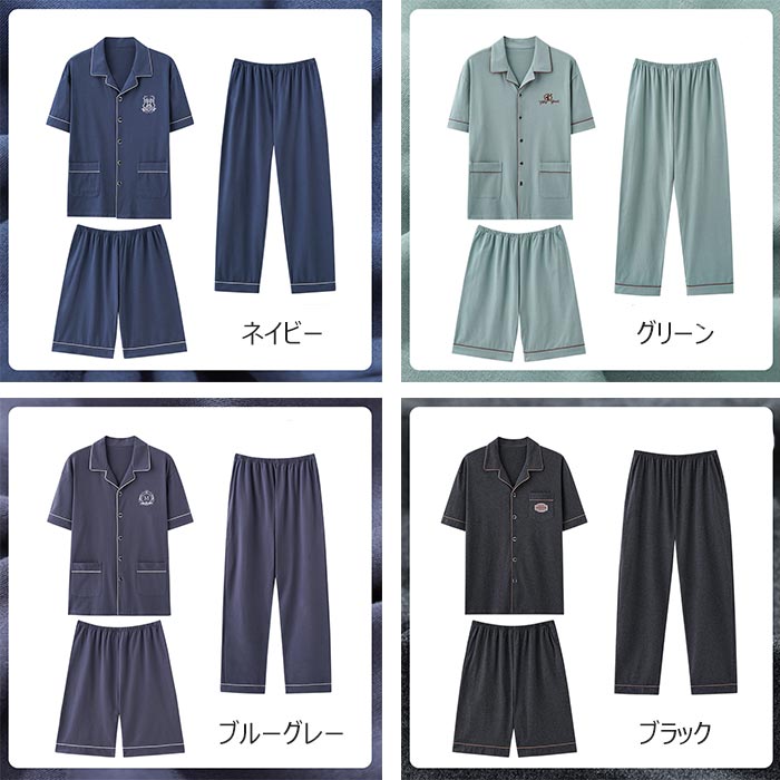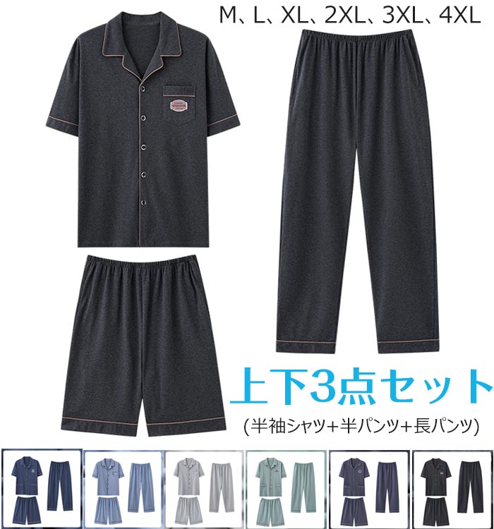 メンズ パジャマ 綿100% 3点セッ インナー 下着 ナイトウエア 続々入荷中 ダークブルー ライトブルー ダークグレー ライトグレー ネイビー グリーン ブルーグレー ブラック M L XL 2XL 3XL 4XL