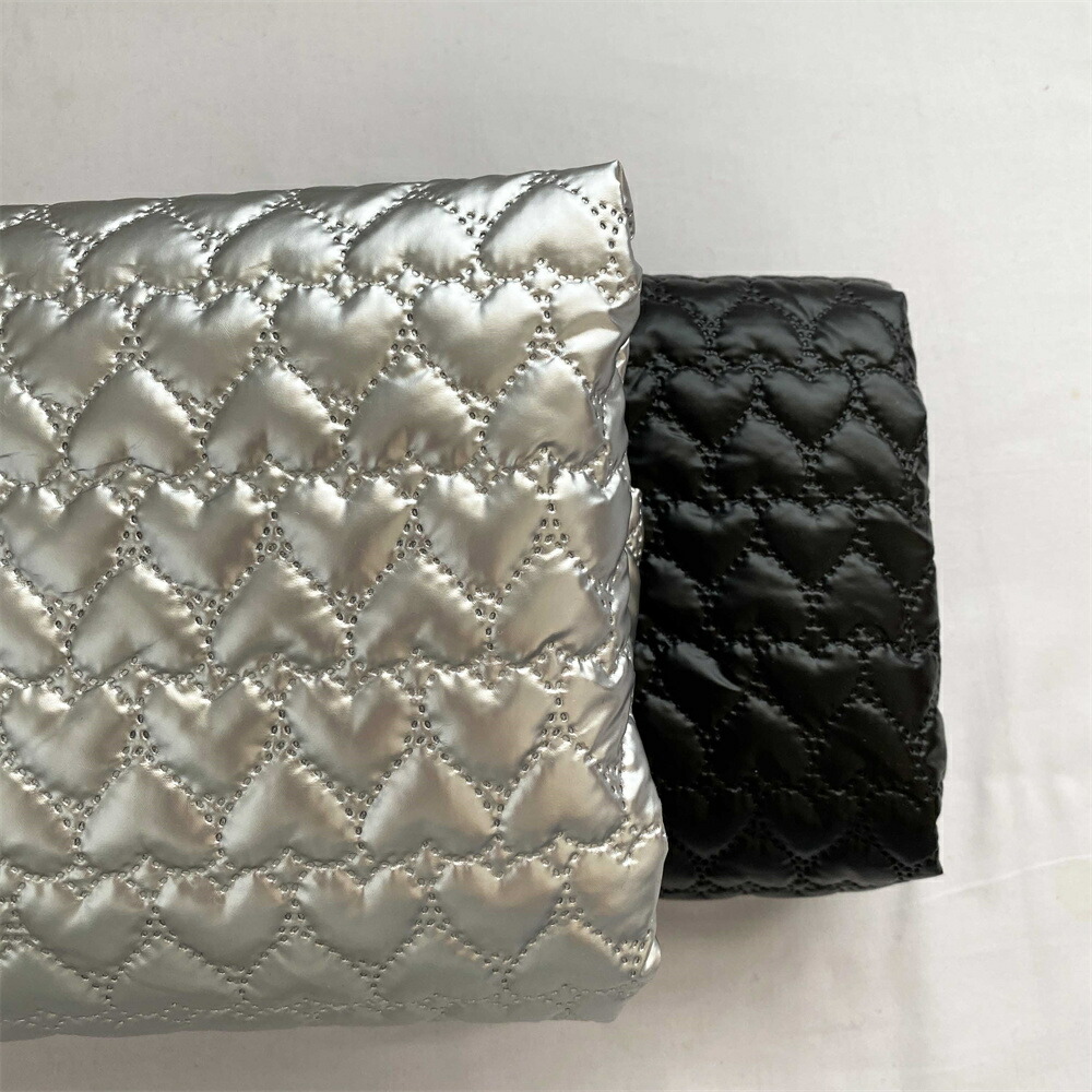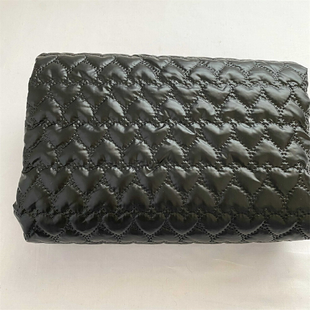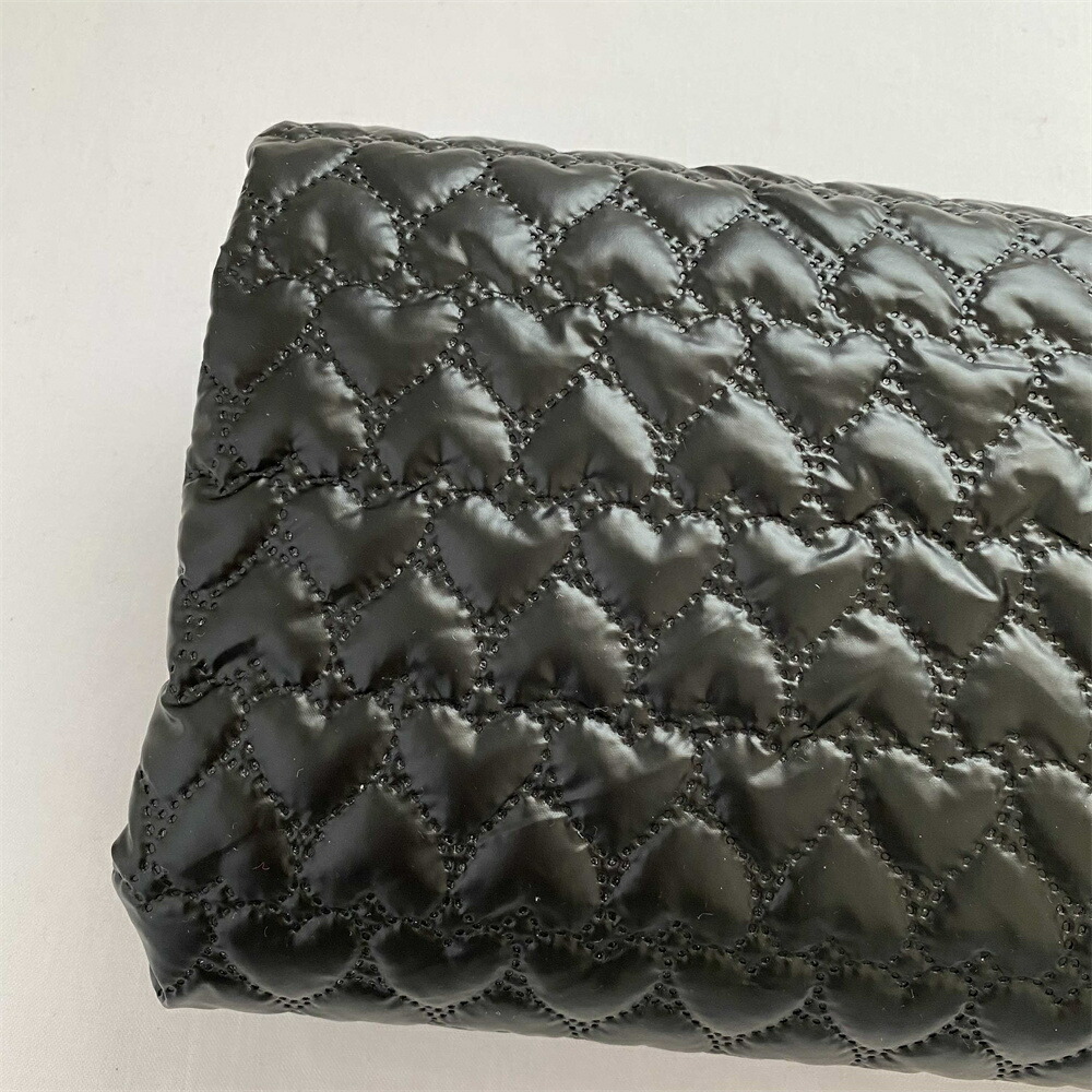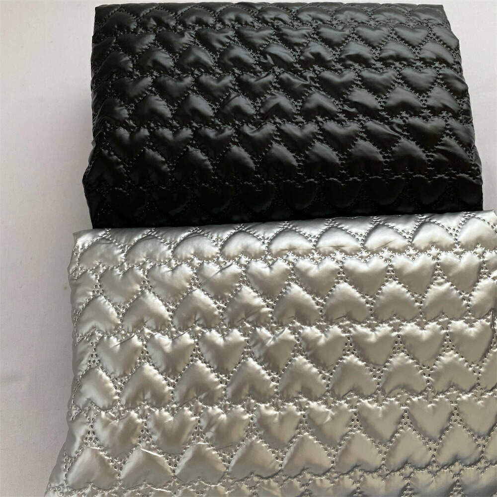140cm幅 90cm単位 生地 布 布地 きじ ぬの 手作り生地 裁縫 DIY用生地 手芸用 ハンドメイド素材 光沢感 エンボス加工 綿入り ハート柄 黒 押し紋