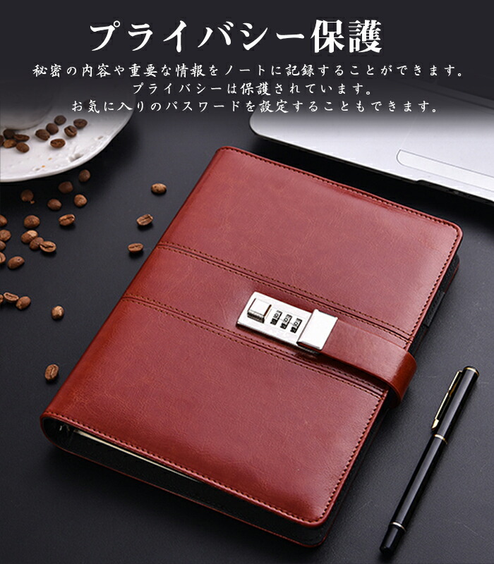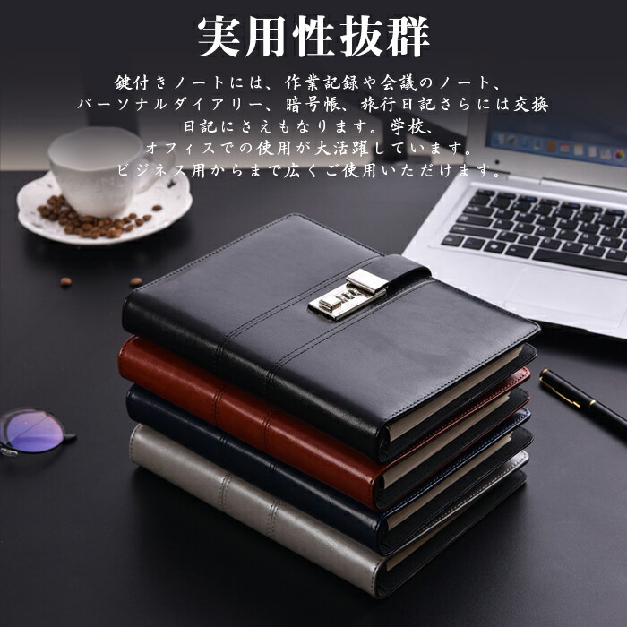 鍵付きノート システム手帳 スケジュー 文房具 事務用品 手帳 ノート システム手帳 新作 ネイビー シルバー ブラック ワインレッド A5 B5 B6