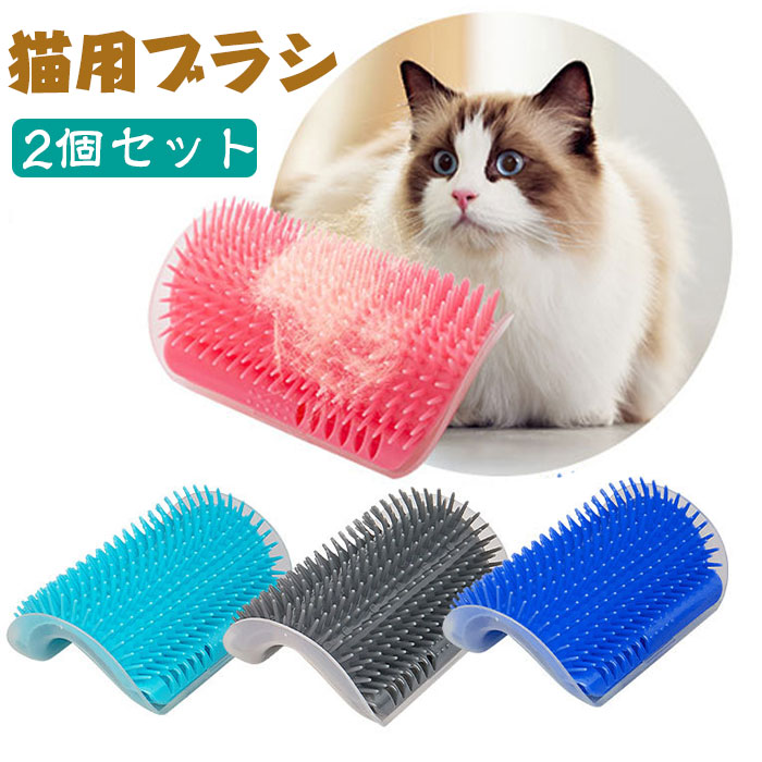 猫 ブラシ 2個入 セルフグルーミング グレー ブルー ピンク ネイビー グリーン