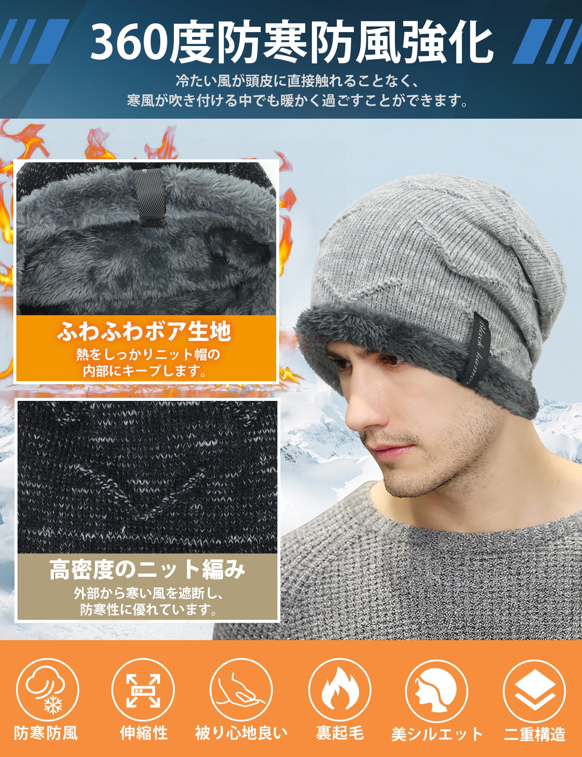ニット帽 裏ボア 冬 メンズ ニットキャップ ツバ付き 防寒 裏起毛 帽子 厚手 あったか ニット編み 暖かい ふわふわ スキー スノボ アウトドア スポーツ 寒さ対策 お年寄り 誕生日 ギフ 高齢者