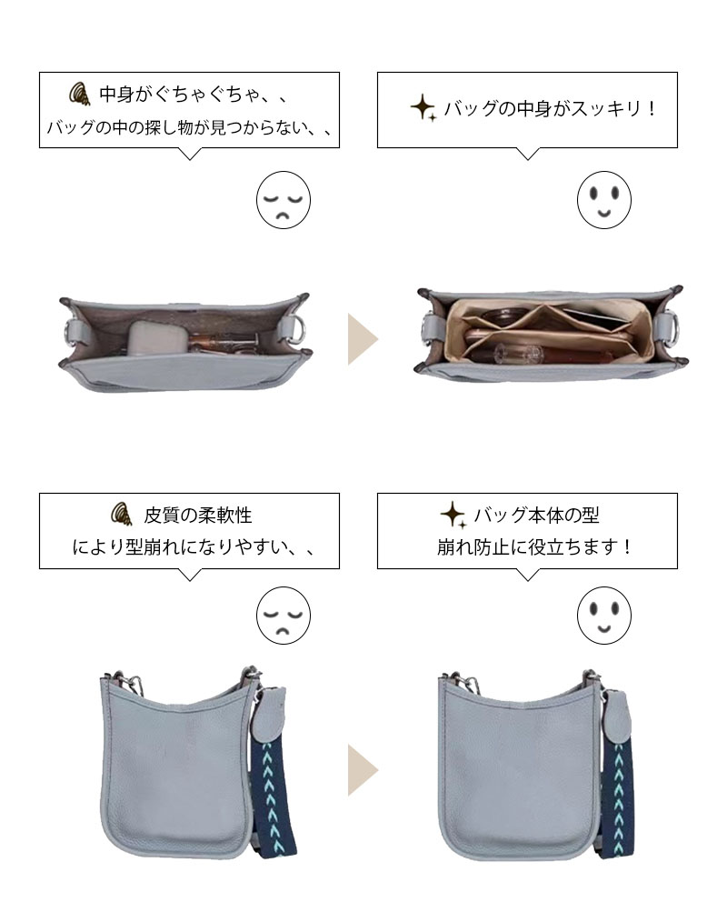 バッグインバッグ Hermes Eve バッグ 小物 ブランド雑貨 通販 タイプA-evelyne PM タイプA-evelyne TPM タイプB-evelyne PM タイプB-evelyne TPM ブラック グレー ブラウン