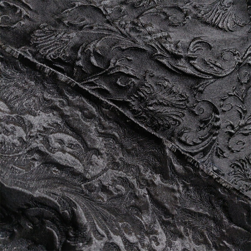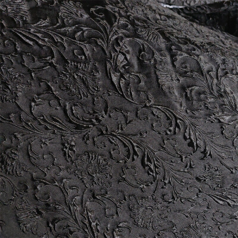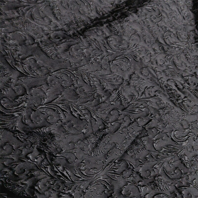 145cm幅 長さ95cm+95cm ジャカード生地 エンボス生地 生地 布 布地 ぬの きじ 色織り 花柄生地 黒 ブラック 肌理感