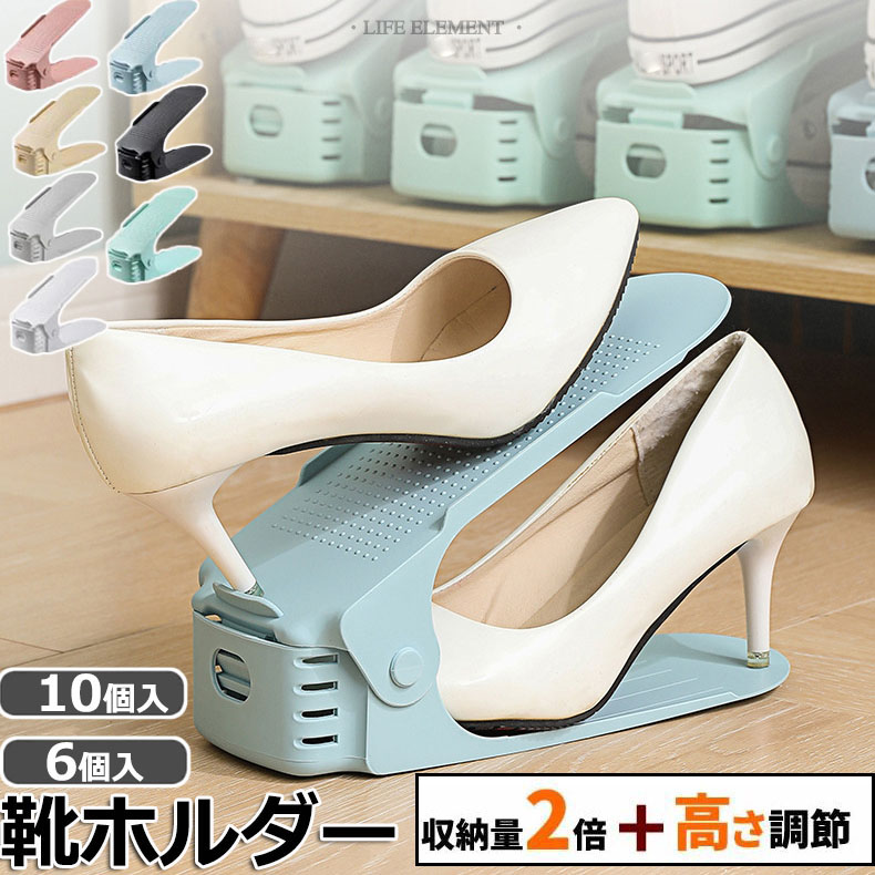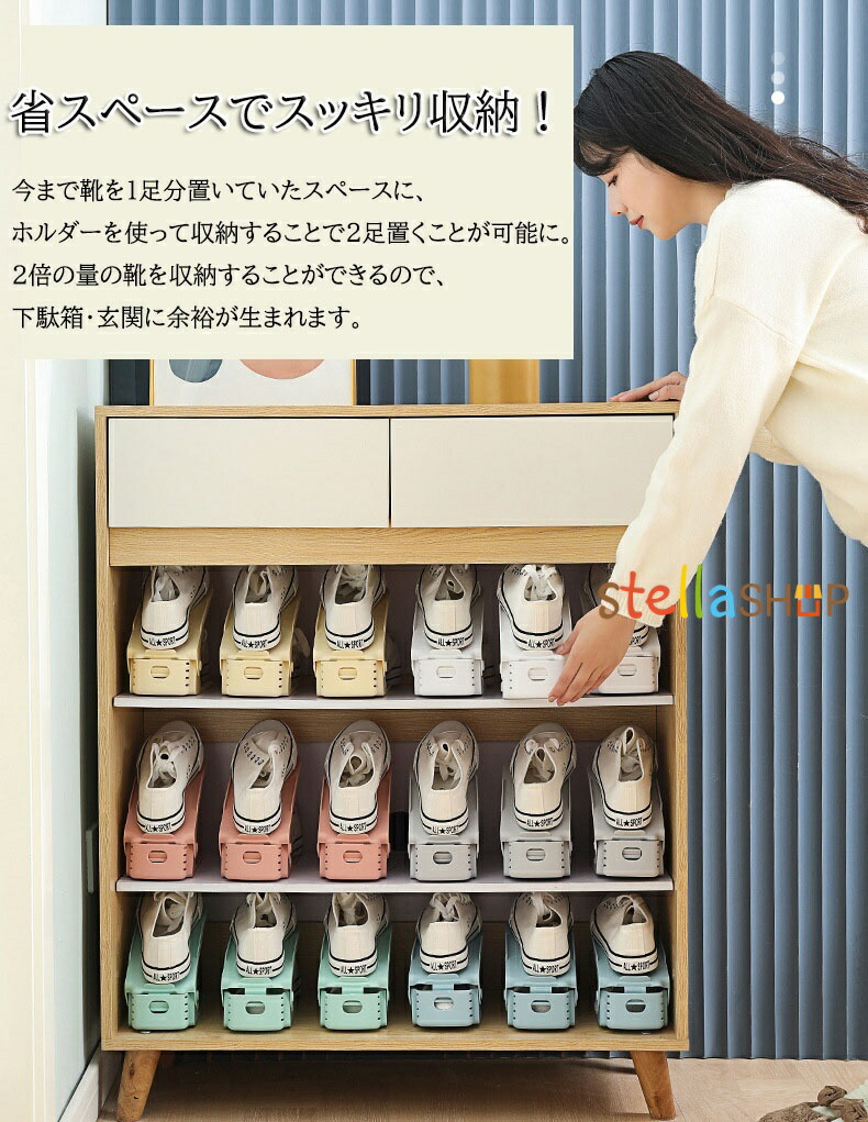 靴 収納 6個入り くつホルダー スリ グリーン(6個) ブルー(6個) ピンク(6個) イエロー(6個) ホワイト(6個) ブラック(6個) グレー(6個) グリーン(10個) ブルー(10個) ピンク(10個) イエロー(10個) ホワイト(10個) ブラック(10個) グレー(10個)