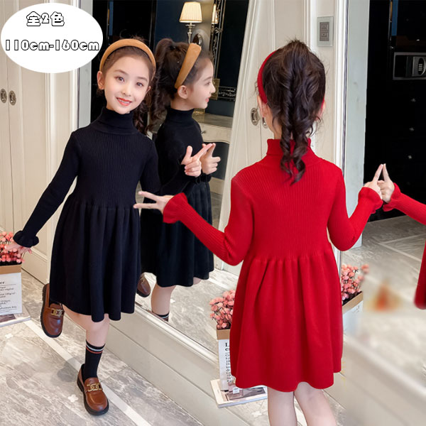 韓国子供服 ワンピース 女の子 ニット キッズ ベビー マタニティ 豊富な品揃え ブラック レッド 110 120 130 140 150 160