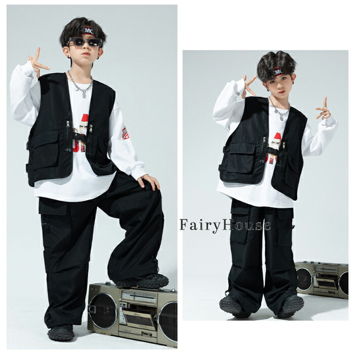 黒ベスト キッズ ダンス 衣装 ベスト キッズ ベビー マタニティ 新登場! ベスト単品 パンツ単品 110 120 130 140 150 160 170 180