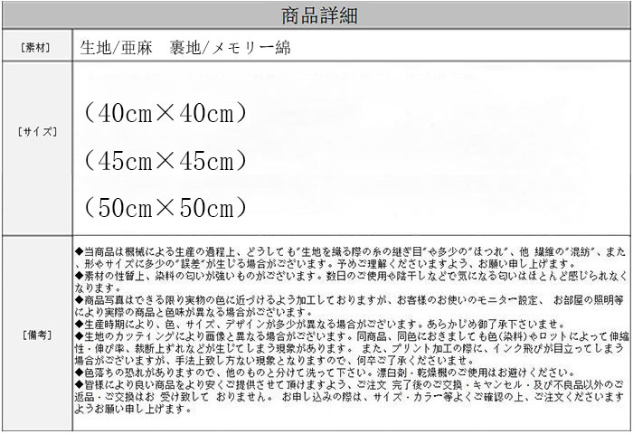角型 クッション 40cm×40cm type1 type2 type3 type4 type5 type6 type7 type8 type9 type10 (40cm×40cm) (45cm×45cm) (50cm×50cm)