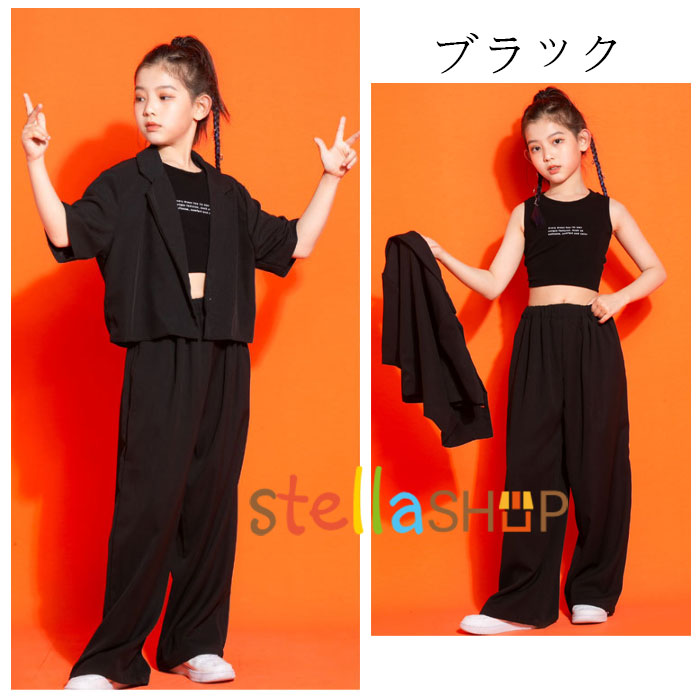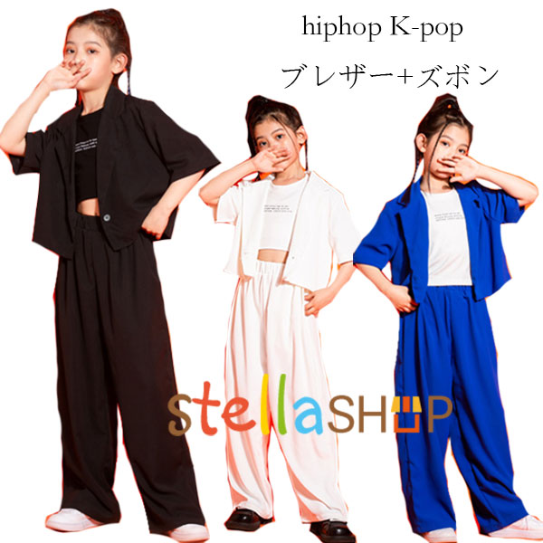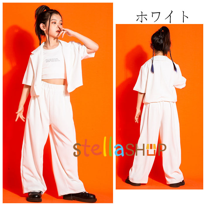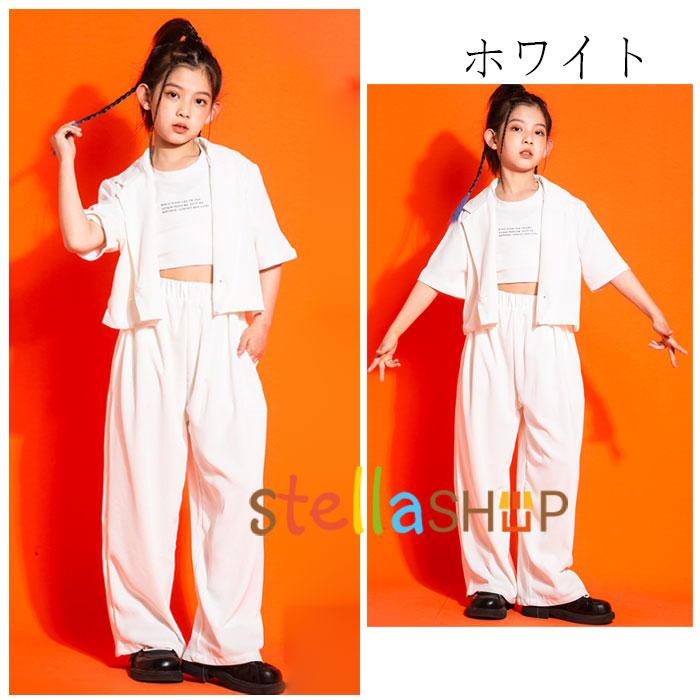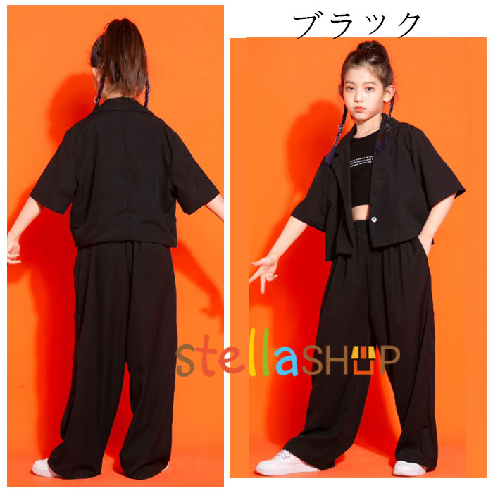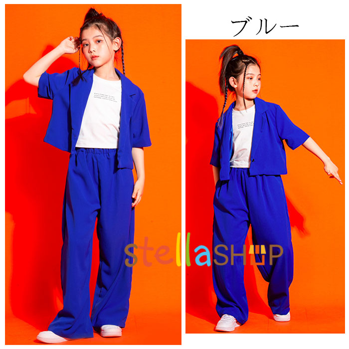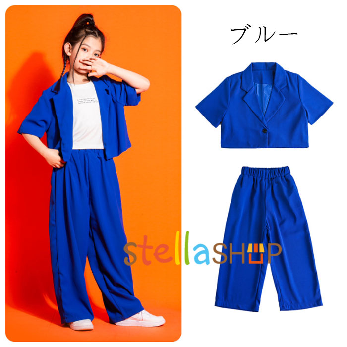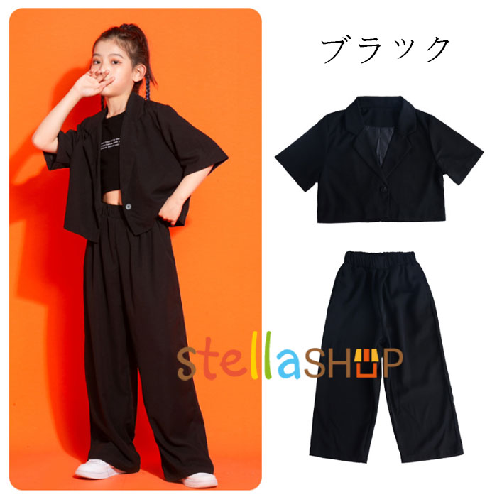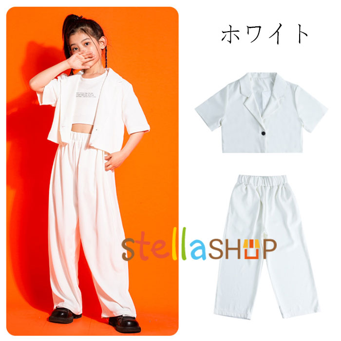 ダンス衣装 女の子 半袖 スーツ ヒッ キッズ スーツ カジュアルセットアップ カジュアルパンツセット 新登場! ブラック ホワイト ブルー 110 120 130 140 150 160 170 180