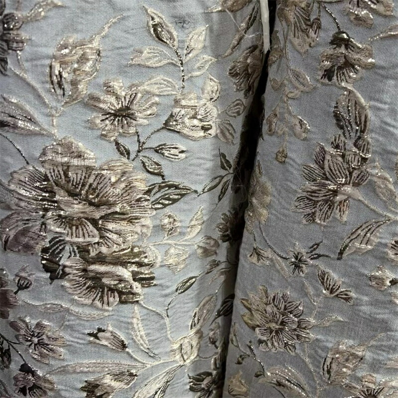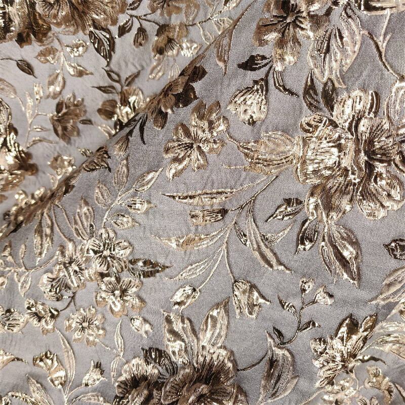 150cm幅 長さ95cm+95cm ジャカード生地 エンボス生地 生地 布 布地 ぬの きじ 花柄生地 灰金色 ゴールド 肌理感