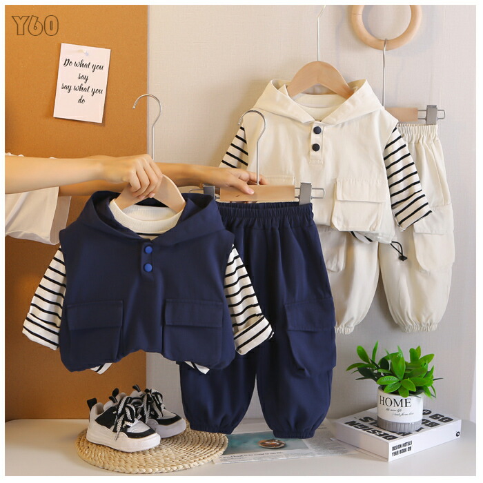 韓国子供服 男の子 セットアップ 80 キッズ スーツ カジュアルセットアップ カジュアルパンツセット 早い者勝ち ネイビー アンズホワイト 80 90 100 110 120