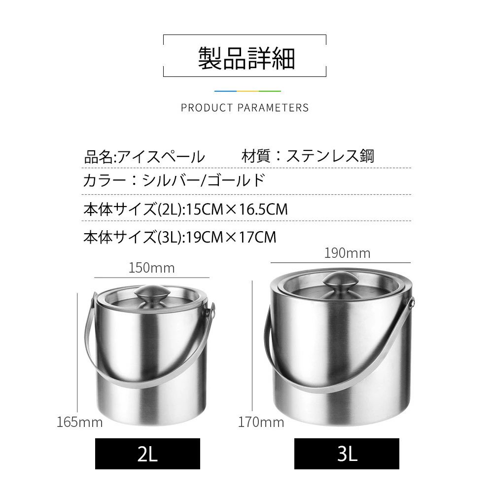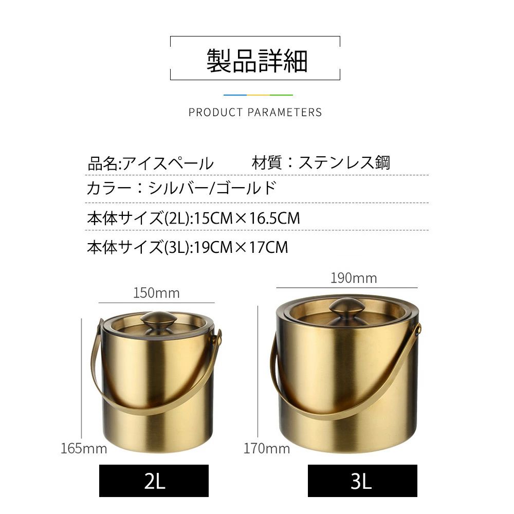 2L 3L アイスペール 溶けないステ ワイン バー 酒用品 アイスペール 早い者勝ち シルバー ゴールド 2L 3L