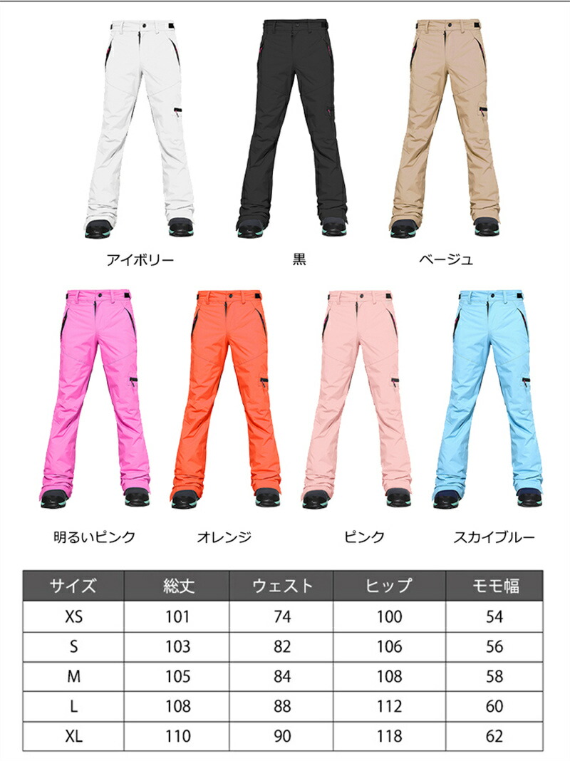 スノーボード ウェア パンツ ロングパ スポーツ アウトドア 豊富 アイボリー 黒 ベージュ 明るいピンク オレンジ ピンク スカイブルー XS S M L XL